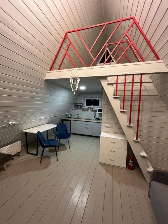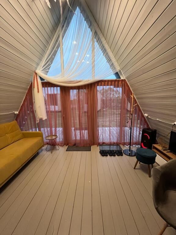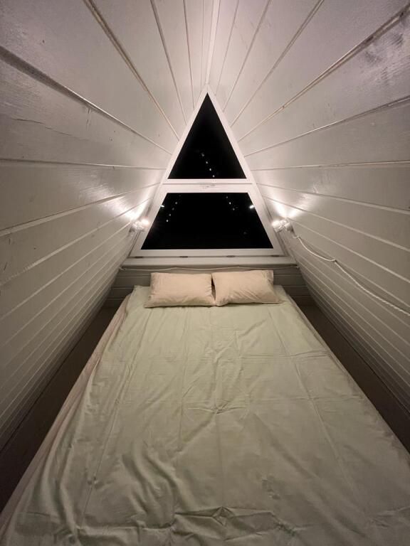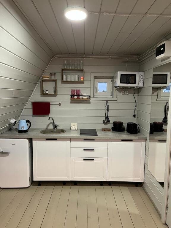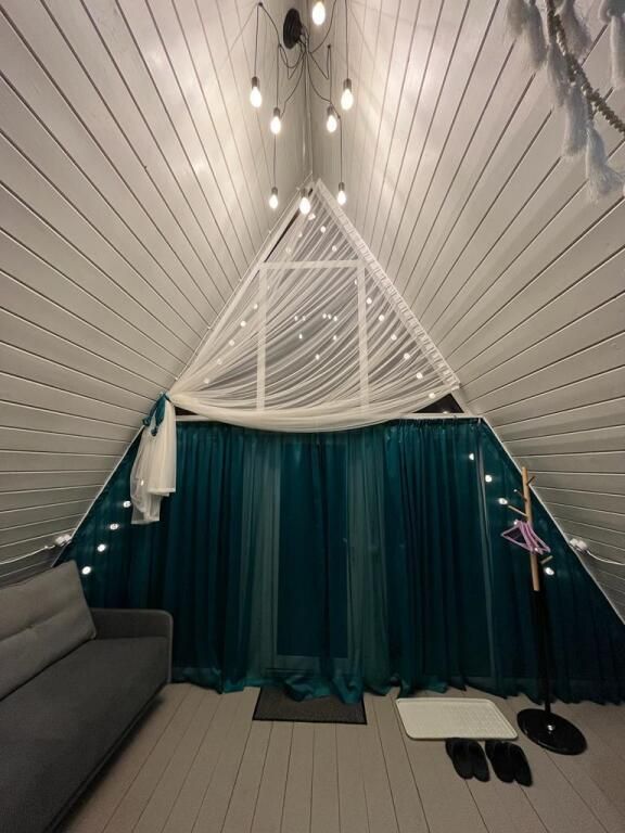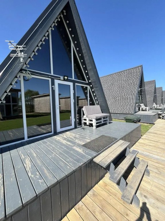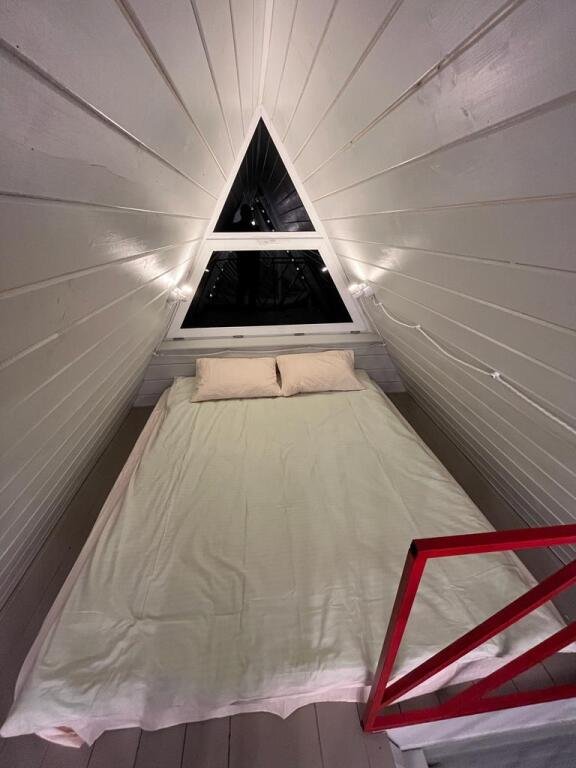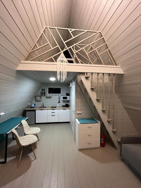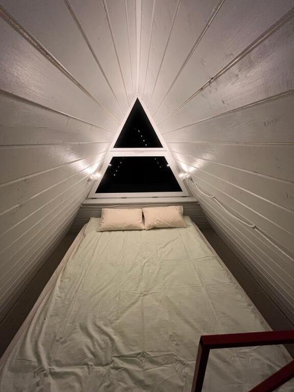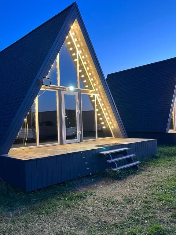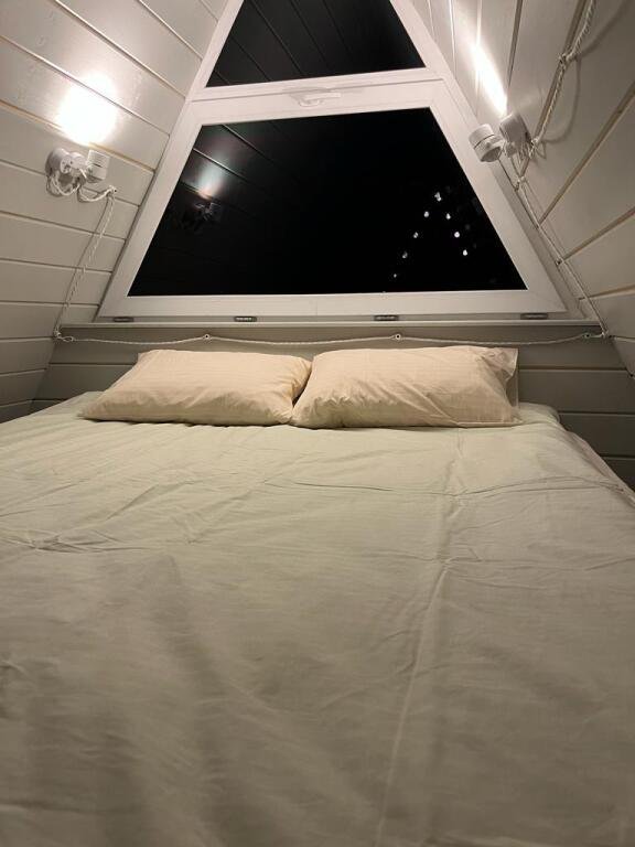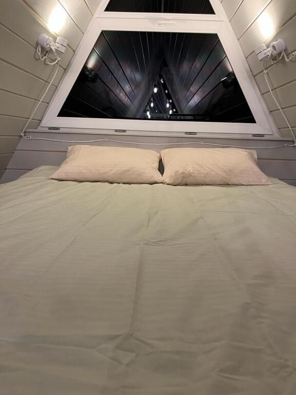 Шесть 1-этажных домиков 40 кв. м. с антресолью. Размещение 2-4 человека. Подходит для комфортного отдыха одной пары или пары с детьми. Спальня (мансардный этаж) с качественным двуспальным матрасом 180х200 см. , на первом этаже мягкий интерьерный диван (спальное место 140х190 см. ). В домике оборудована кухня с бытовой техникой и посудой. Ванная комната с туалетом, душевой кабиной, теплым полом и водонагревателем. Чистейшая фильтрованная вода. Качественное постельное бельё и комплект полотенец для каждого гостя.