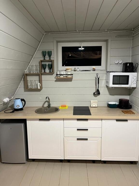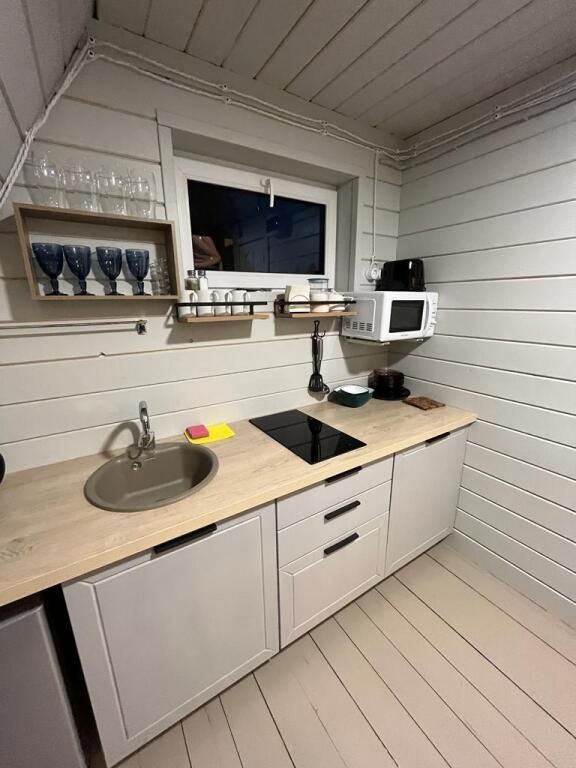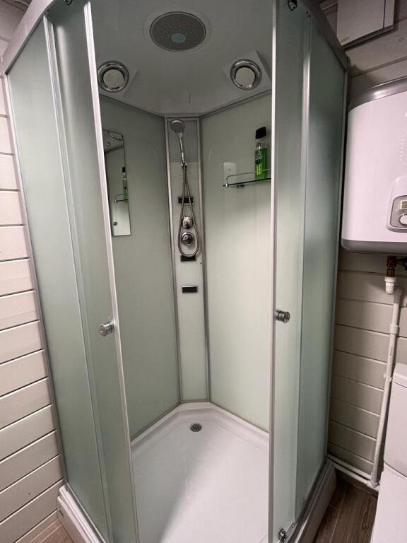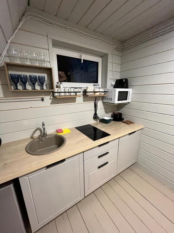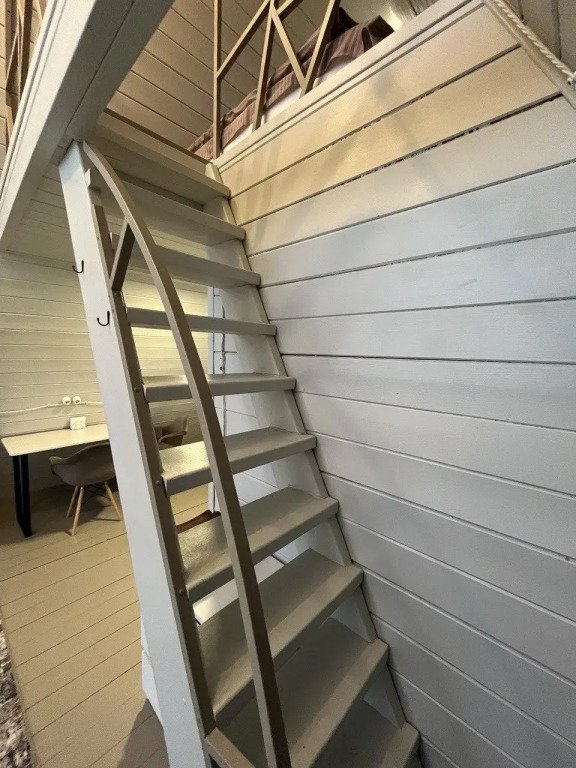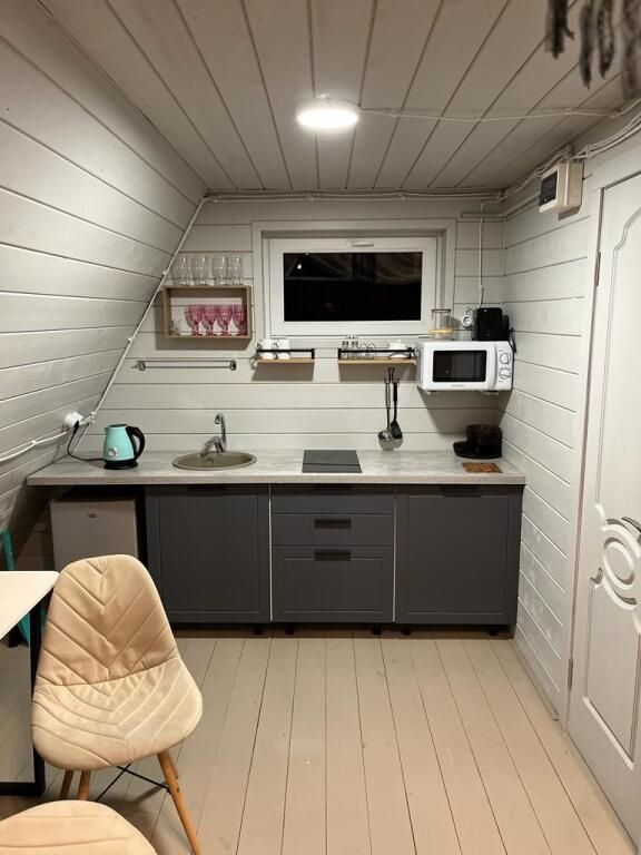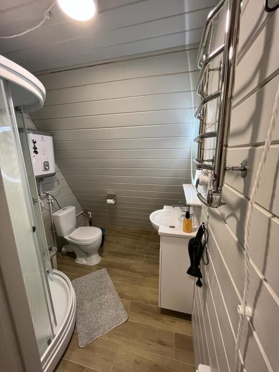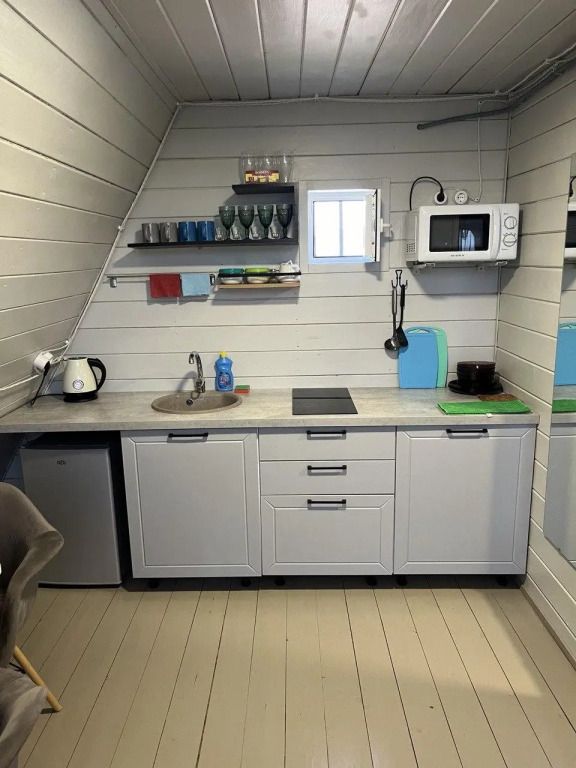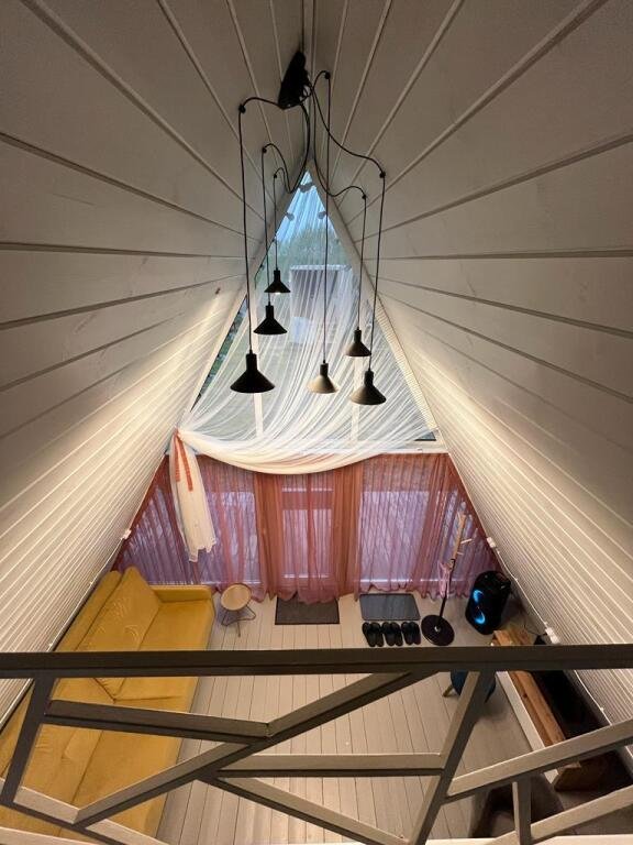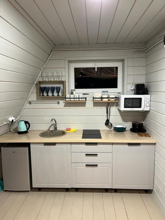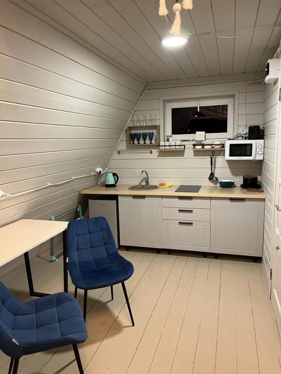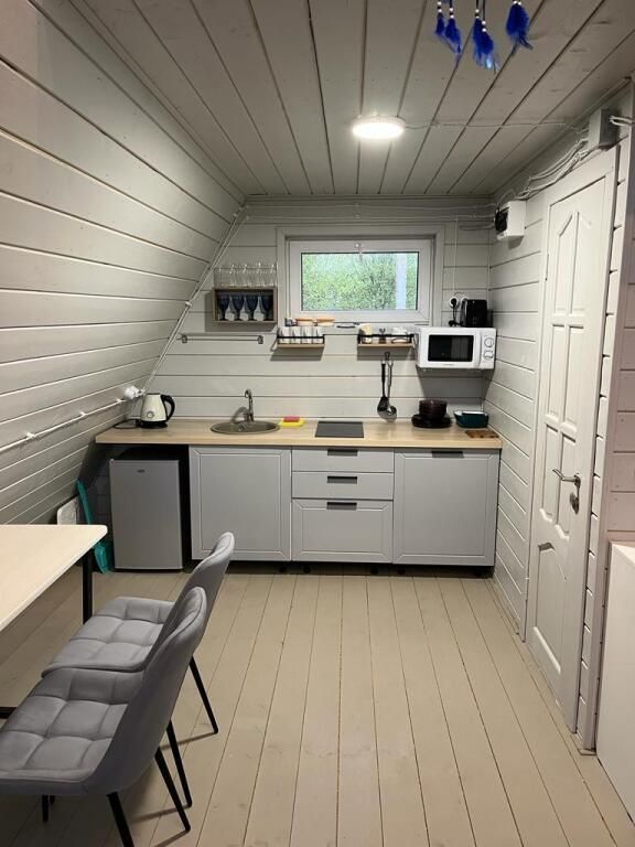 Шесть 1-этажных домиков 40 кв. м. с антресолью. Размещение 2-4 человека. Подходит для комфортного отдыха одной пары или пары с детьми. Спальня (мансардный этаж) с качественным двуспальным матрасом 180х200 см. , на первом этаже мягкий интерьерный диван (спальное место 140х190 см. ). В домике оборудована кухня с бытовой техникой и посудой. Ванная комната с туалетом, душевой кабиной, теплым полом и водонагревателем. Чистейшая фильтрованная вода. Качественное постельное бельё и комплект полотенец для каждого гостя.