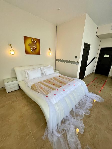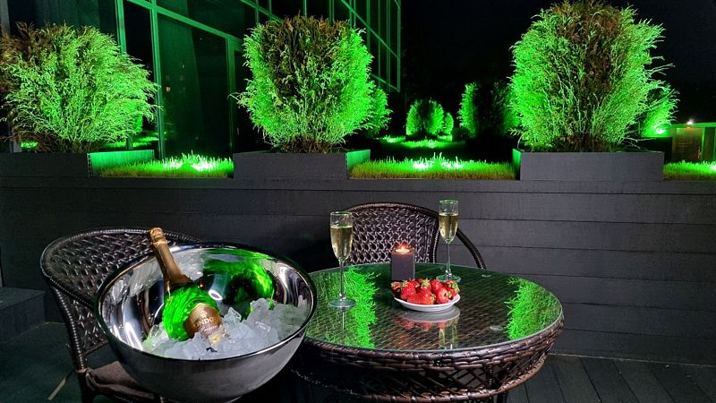 Для ценителей фотосессий в номере есть кольцевая лампа для селфи. Также Вас ждет комплимент от отеля в виде итальянского шампанского и коробки конфет.