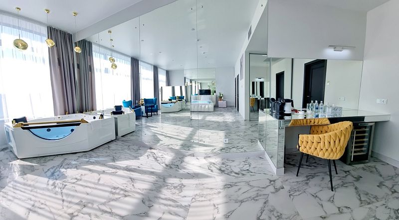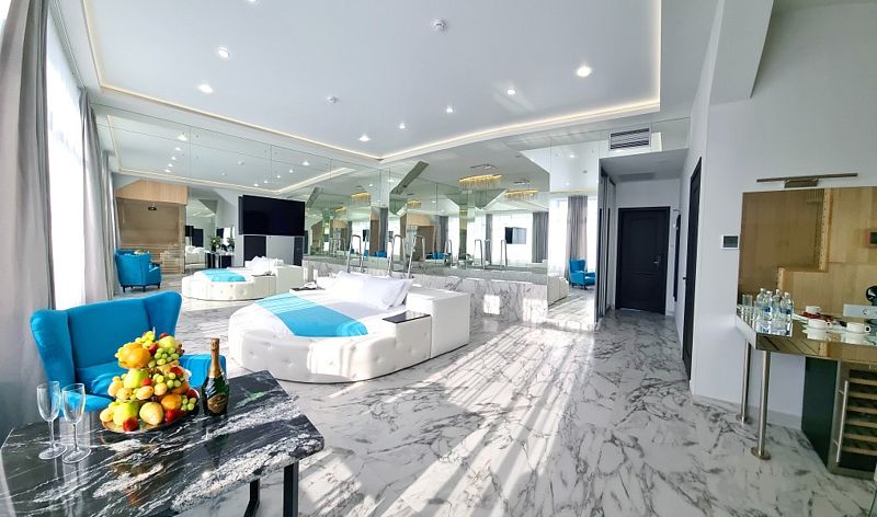 Для тех, кто ценит изысканность и роскошь, отель «Кристалл» предлагает номера с летними террасами, джакузи, саунами и небольшими бассейнами.