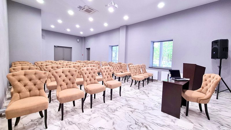 Конференц-зал отеля, вместимостью до 50 человек, сможет комфортно разместить всех ваших гостей. Зал позволяет создавать конфигурации рассадки, проводить кофе-брейки, фуршеты, банкеты, презентации, семинары, тренинги, корпоративные мероприятия, деловые встречи, а также оснащен новейшим современным аудиовизуальным оборудованием и системой индивидуального кондиционирования.