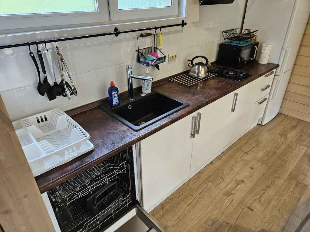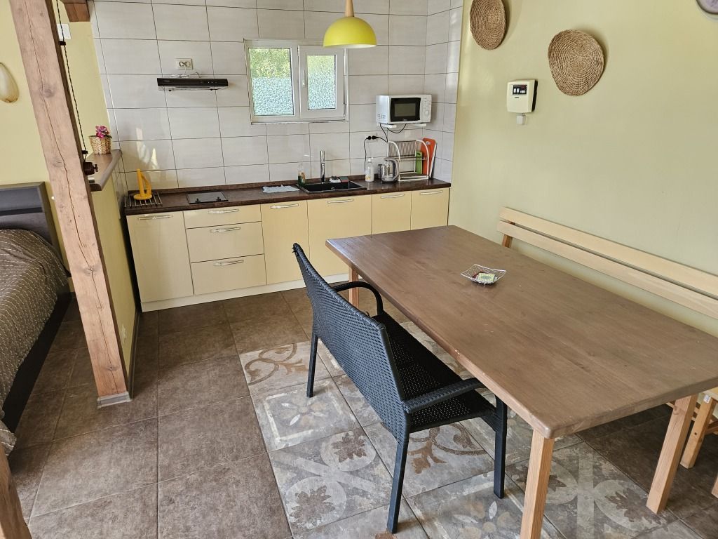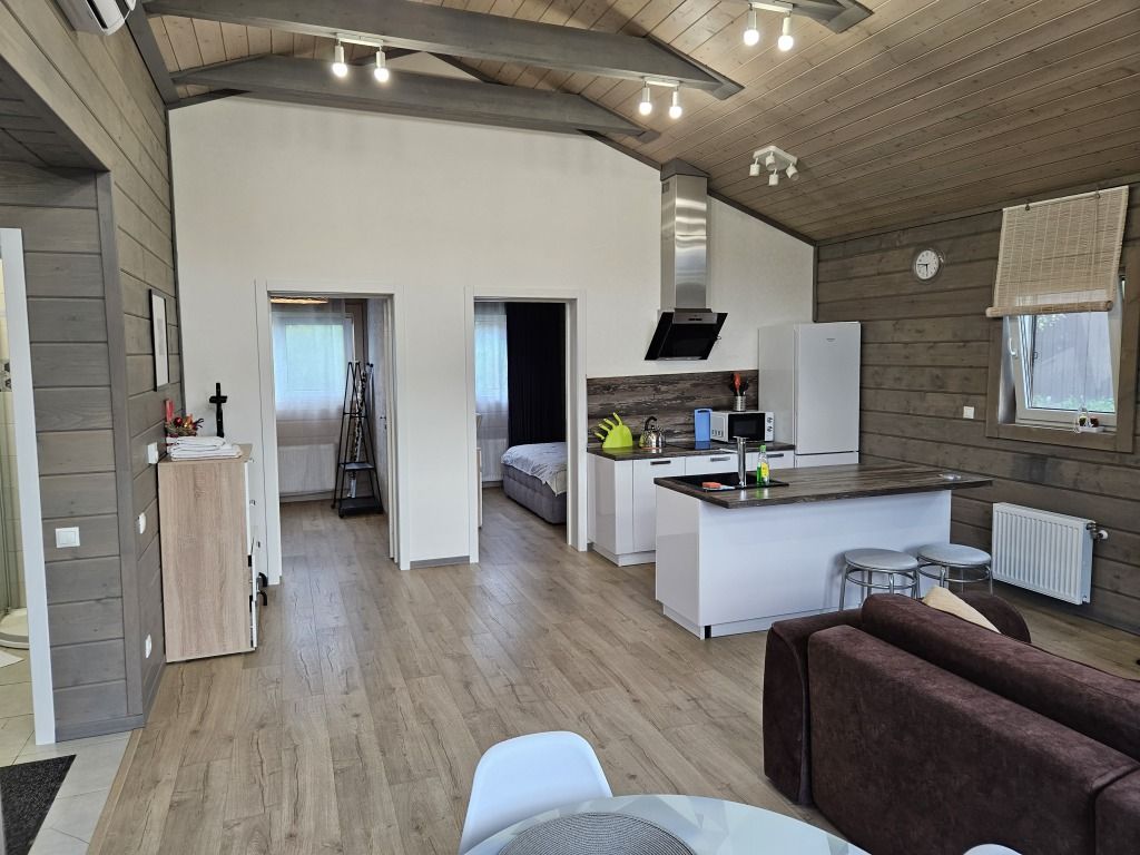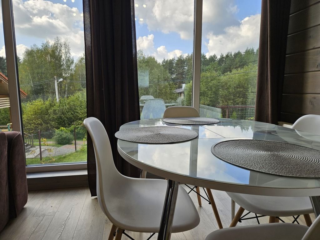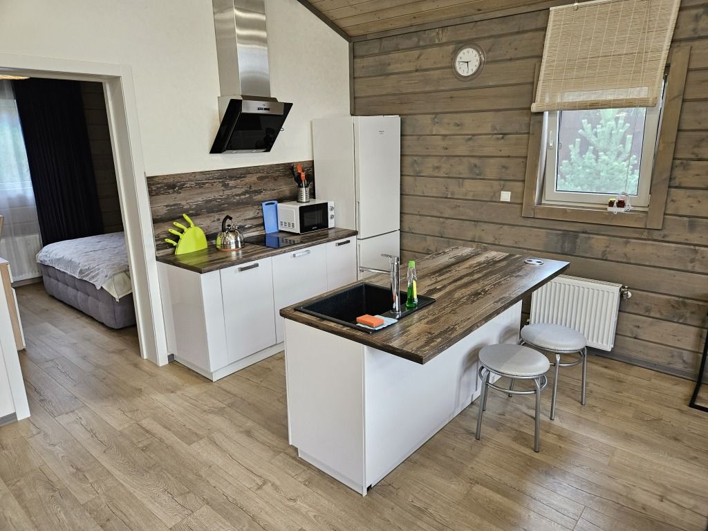 На территории мини-базы расположен большой коттедж способный вместить до 6 гостей и небольшой домик с сауной, рассчитанный на двоих проживающих. В каждом домике есть полностью оборудованная кухня, на которой гости сами могут приготовить свои любимые блюда и обеденная зона. Постояльцы смогут проявить свои кулинарные способности или приготовить обед на мангале. До магазина можно доехать за 10 минут.