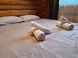 Для проживания во время отдыха - предложены одноэтажные домики-срубы, с кухней, гостиной и отдельными спальнями. Кухня оснащена плитой, холодильником, всеми нужными приборами и посудой. В гостиной расположен угловой диван, есть телевизор, шкаф. В каждом домике оборудована ванная комната. Возле домиков построены беседки, в которых можно устроить семейный пикник, и приготовить шашлык по своему рецепту на уже имеющемся рядом мангале.