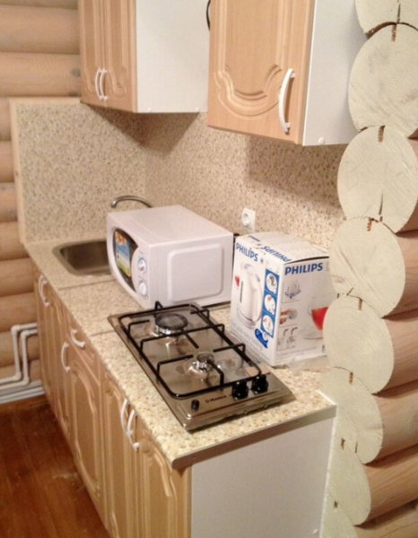 - мини-кухня, оборудованная газовой плитой, микроволновой печью, чайником, посудой;