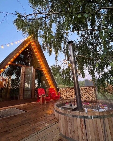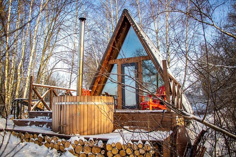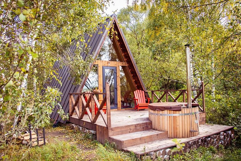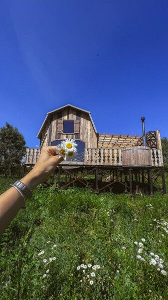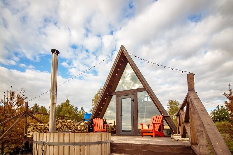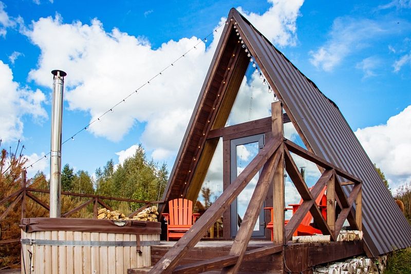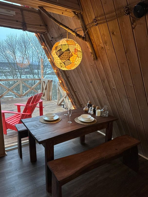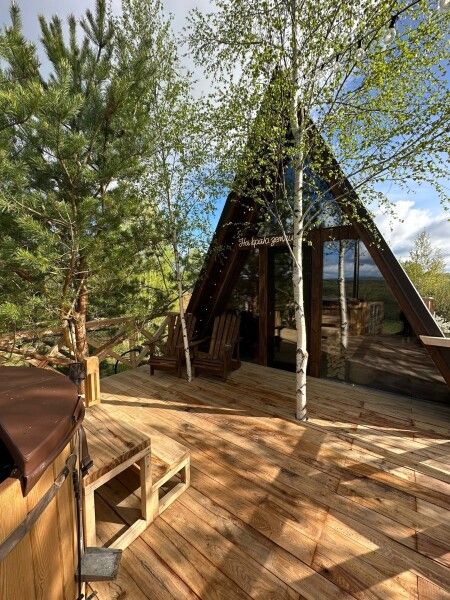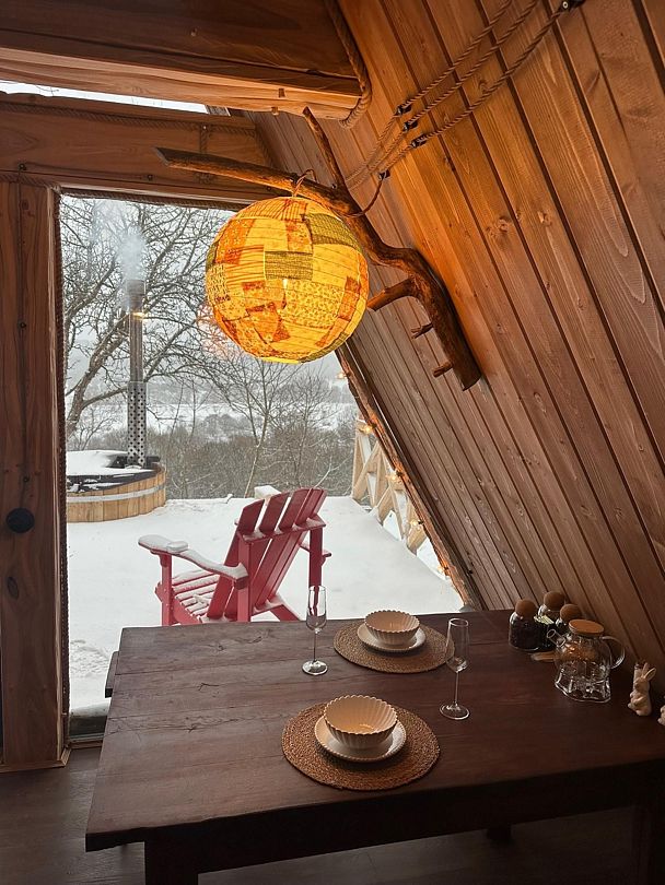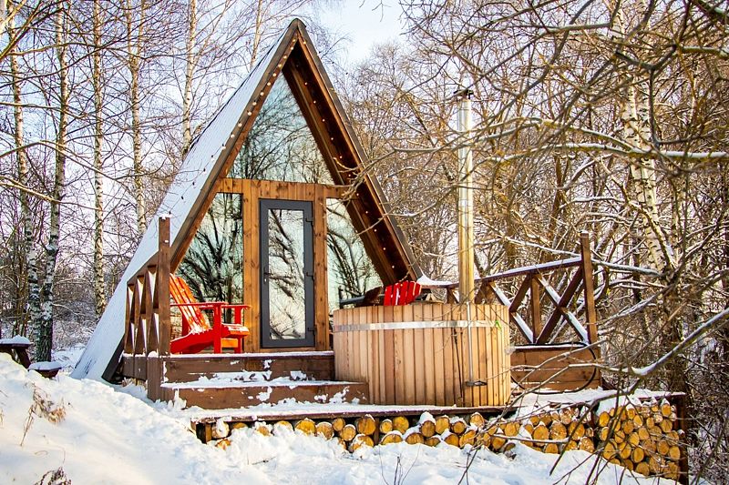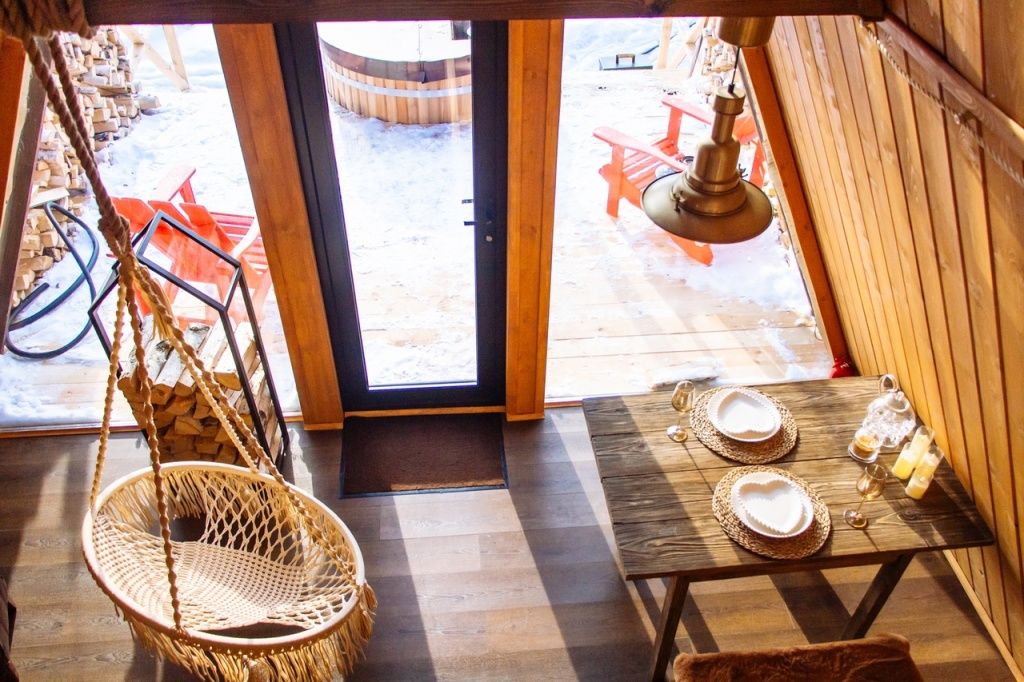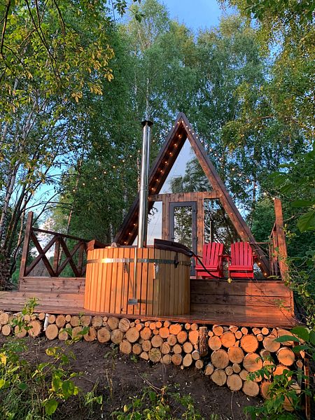 Домик идеально подходит для романтики и свиданий. Площадь дома 18 кв. м и огромная терраса с горячей купелью. Вас ждут невероятные и необычные фото!