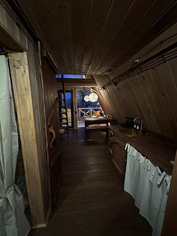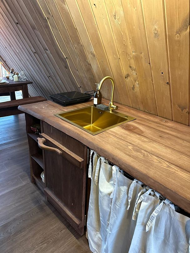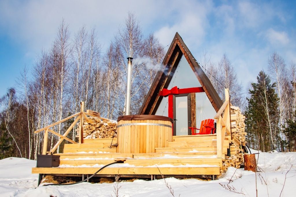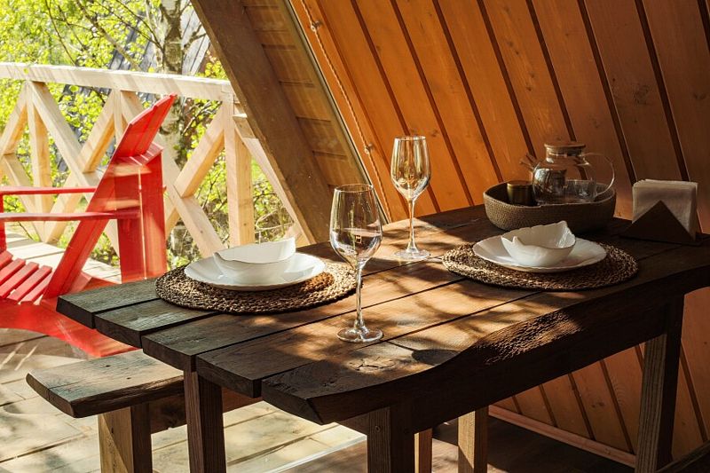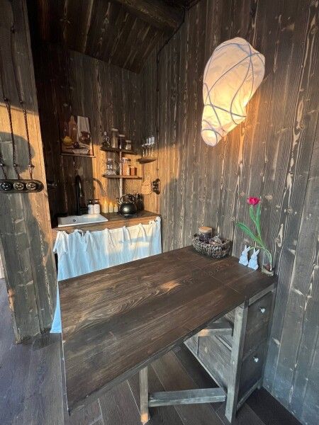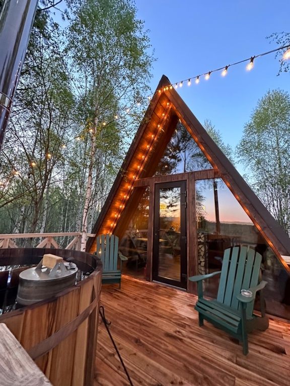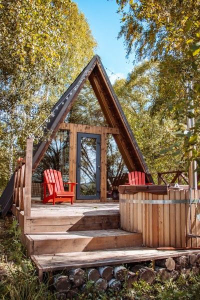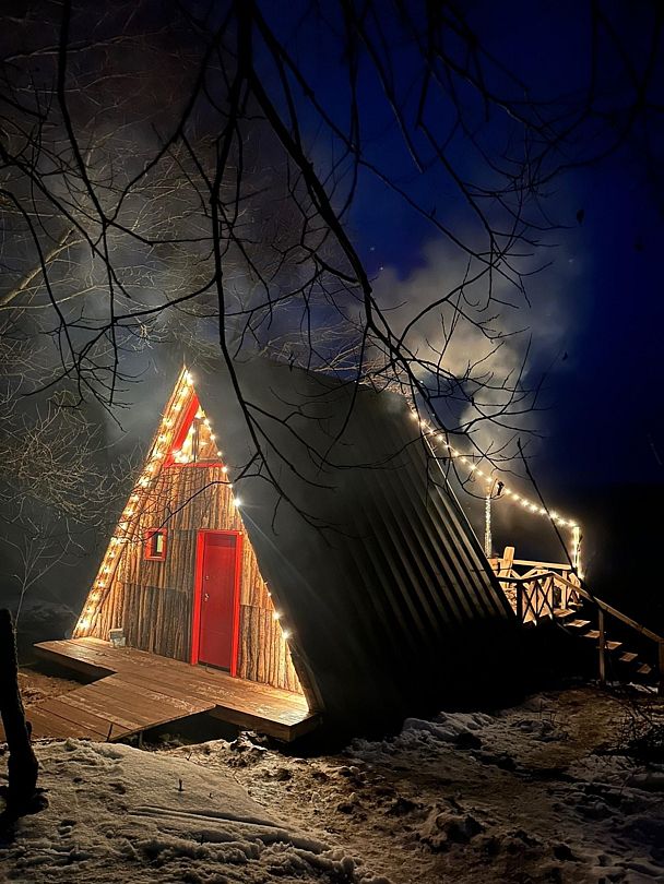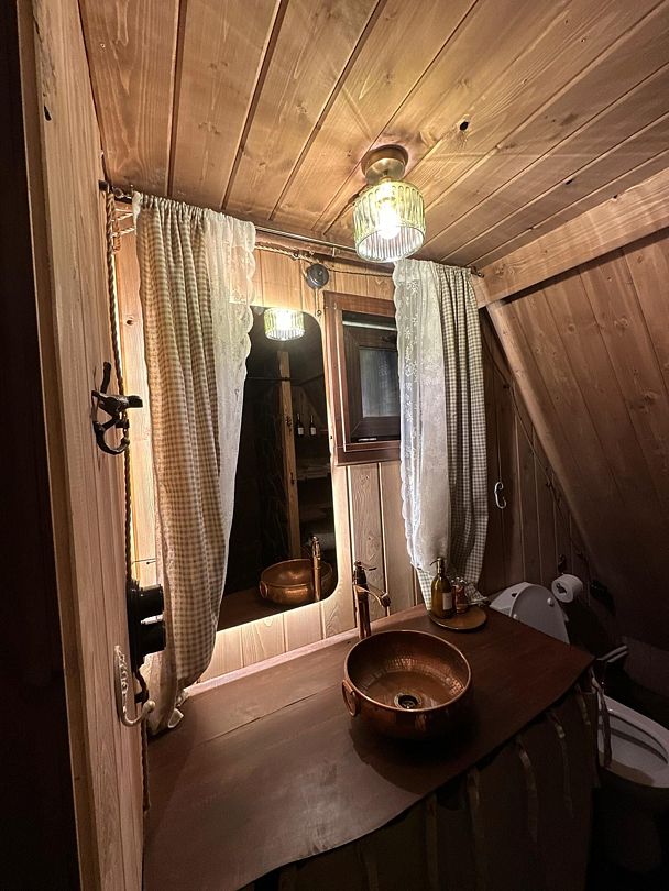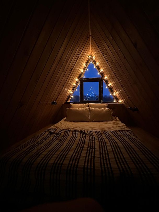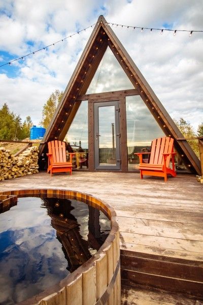 Домик идеально подходит для романтики и свиданий. Площадь дома 18 кв. м и огромная терраса с горячей купелью. Вас ждут невероятные и необычные фото!