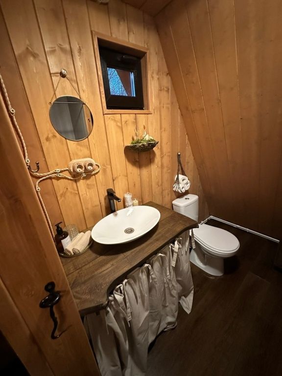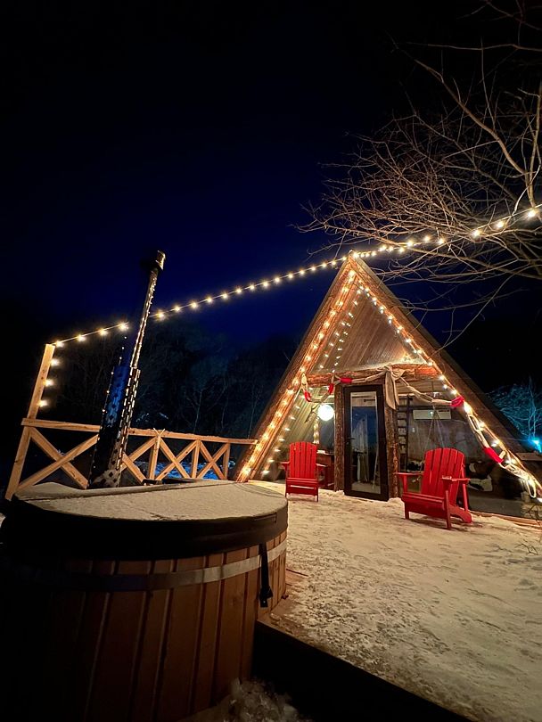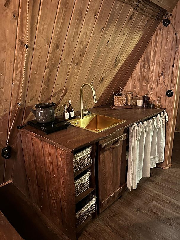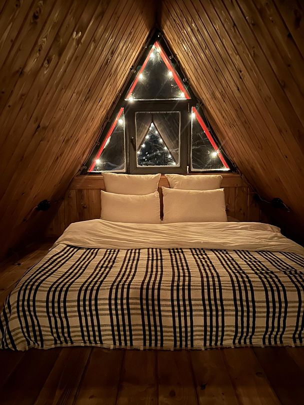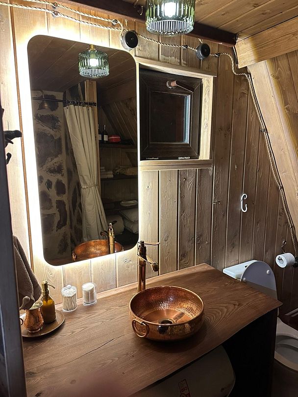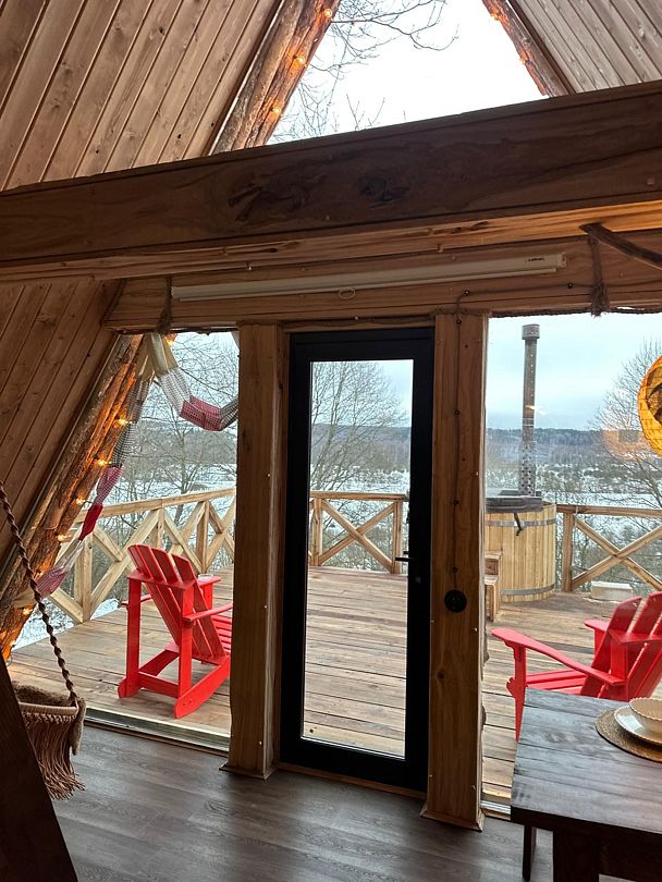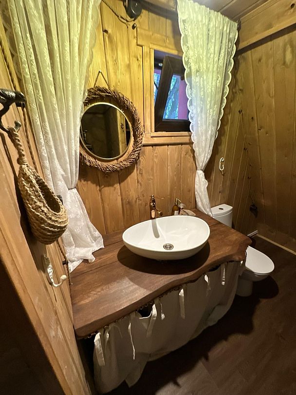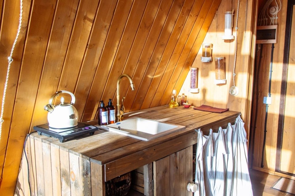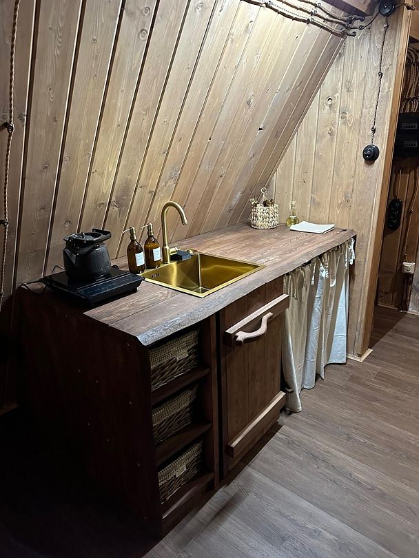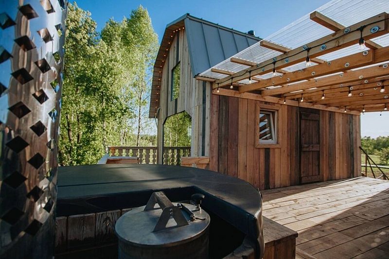 Домик идеально подходит для романтики и свиданий. Площадь дома 18 кв. м и огромная терраса с горячей купелью. Вас ждут невероятные и необычные фото!