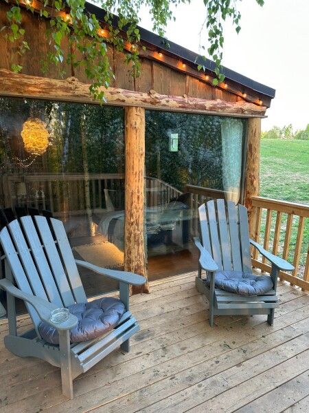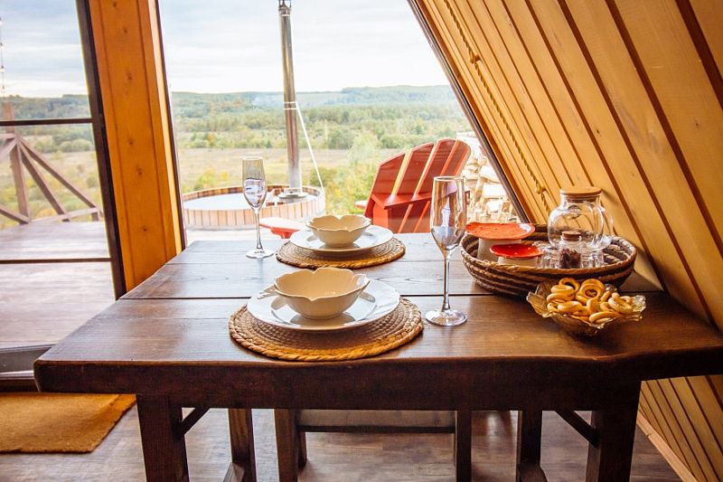 Уединенное шале 38 кв. м с террасой, расположенное в лесной части глэмпинга. Рассчитано до 4-х взрослых людей. Потрясающий вид на бескрайнюю долину реки Серена.