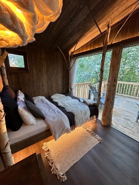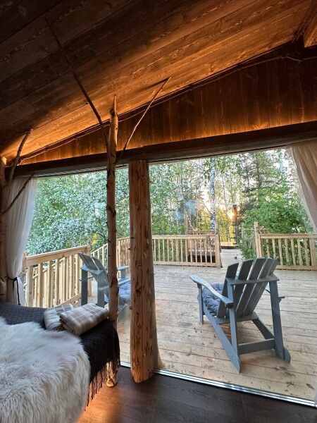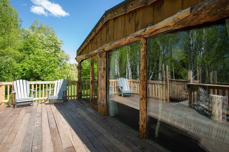 Уединенные шале, расположенные на значительном расстоянии друг от друга, предлагают панорамные виды на бескрайнюю долину. Каждое шале оборудовано комфортабельной террасой с собственной горячей купелью из лиственницы. Гости могут насладиться трехразовым питанием и разнообразными активностями: сплавами по живописным рекам, прогулками на квадроциклах, погружением в красоту дикой природы — от цветочных полей до березовой рощи и лесного массива. Организация трансфера также возможна по запросу.