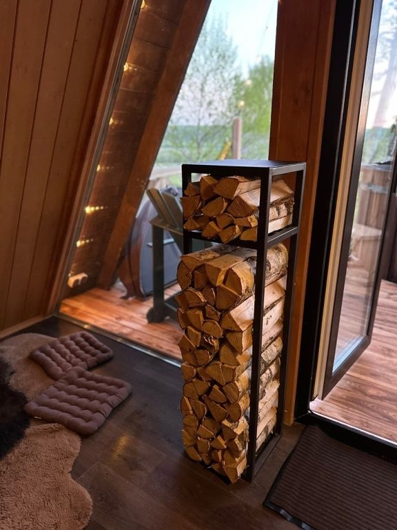 Дровяной камин с большим запасом дров, набор для разведения огня. Горячая купель из лиственницы диаметром 2 метра на террасе.