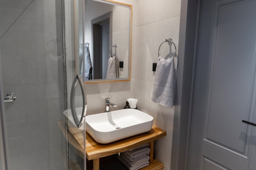 Чтобы вы могли отдохнуть после долгого дня, в номере есть телевизор и халат. Оснащение зависит от выбранной категории номера.