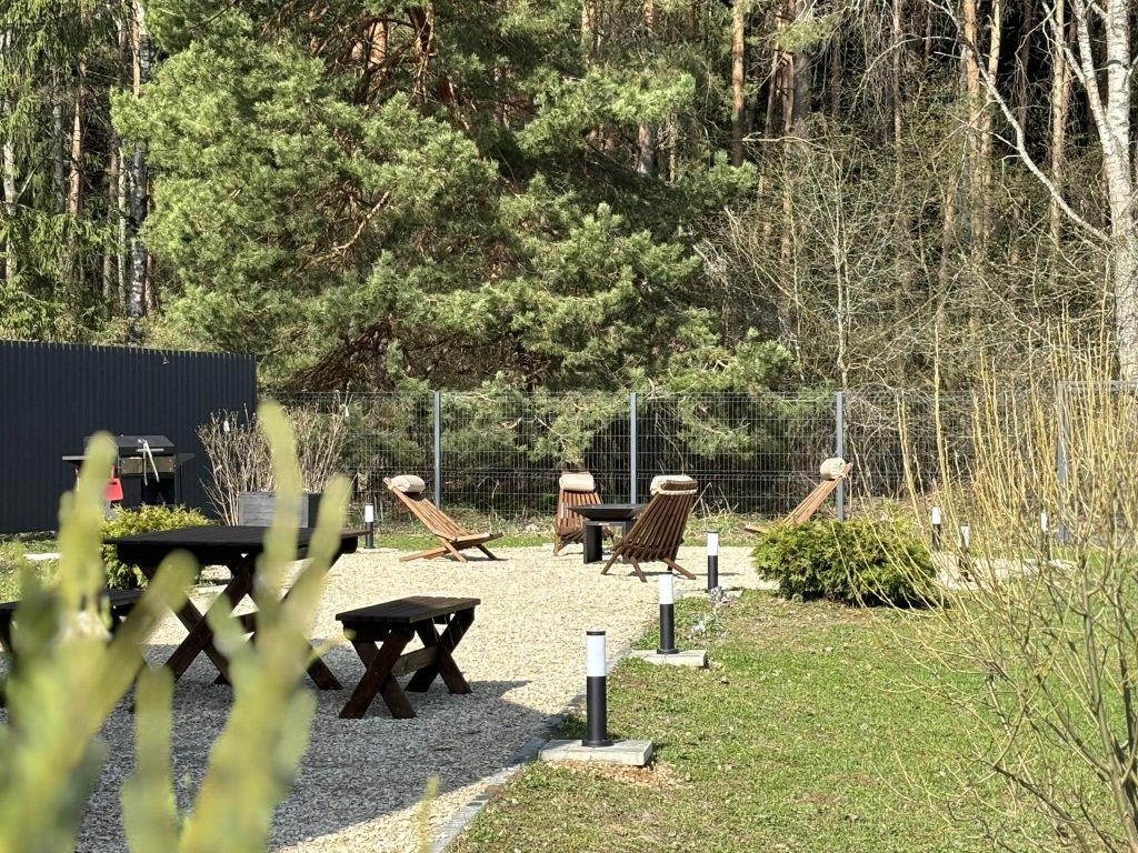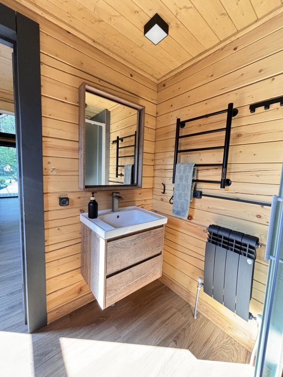 На первом этаже расположены гостиная с кухней, спальня, санузел с душевой кабиной. На втором этаже есть спальня с двумя односпальными кроватями. Гостям доступна доставка еды и продуктов, а также аренда сап-бордов и сап-туры по Протве с экскурсионной программой.