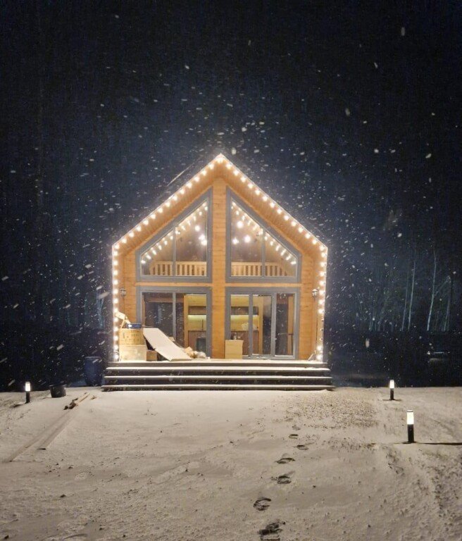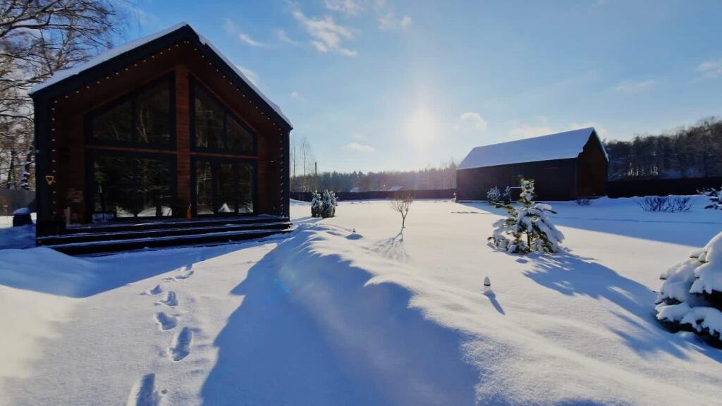 Дом с камином и панорамными окнами находится в Боровске, в 80 км от Москвы. Поблизости с домом находятся лес, старинные монастыри и церкви, святой источник с купелью. В самом Боровске есть кинотеатр. Неподалёку располагается конный центр, Этномир, платная рыбалка, супермаркеты. В 18 км от Боровска находится город Обнинск, где гости могут посетит торговый центр, кинозал и развлечения для детей.
