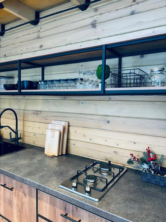 Дом представляет собой проект, состоящий из двух барнхаусов. Дома подходят для размещения большой компании или семьи. Территория имеет 30 соток. У каждого дома своя мангальная зона, где есть 4 кресла-шезлонга, костровая чаша, мангал, обеденный стол, а также терраса с подсветкой, креслами и столиком. В каждом доме установлен камин. Дома оснащены полами с подогревом, душевыми, работает Wi-Fi. В распоряжении гостей капсульная кофемашина, фен, холодильник с морозилкой, микроволновая печь, посуда, умная колонка Сбер Салют, телевизор, раскладной диван, ортопедические матрасы, а также книги и настольные игры. Для удобства гостей предоставляются одноразовые тапочки, зубные щётки с зубной пастой, шампунь, кондиционер и другие принадлежности.