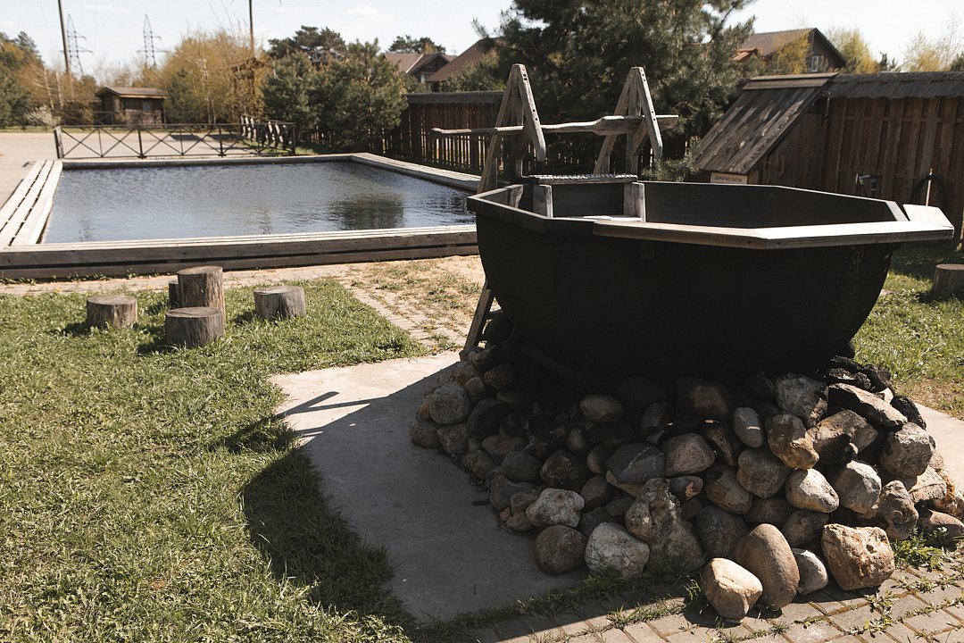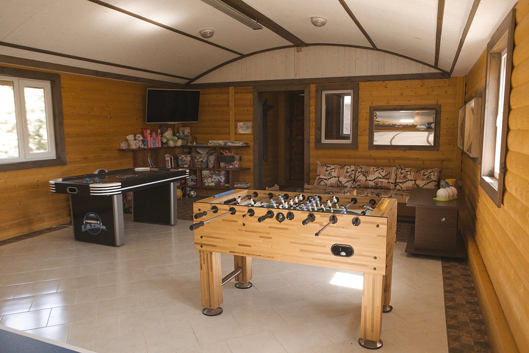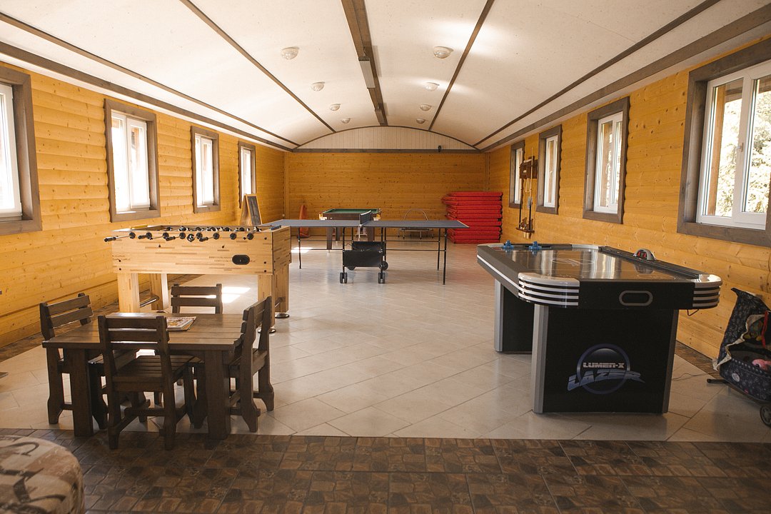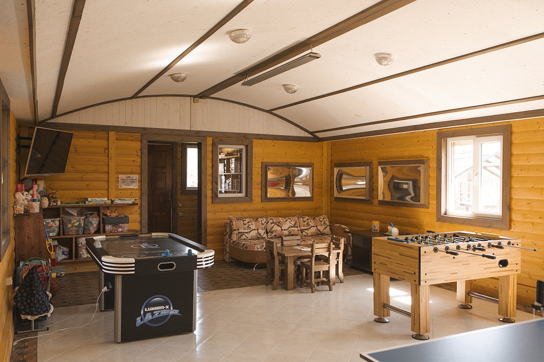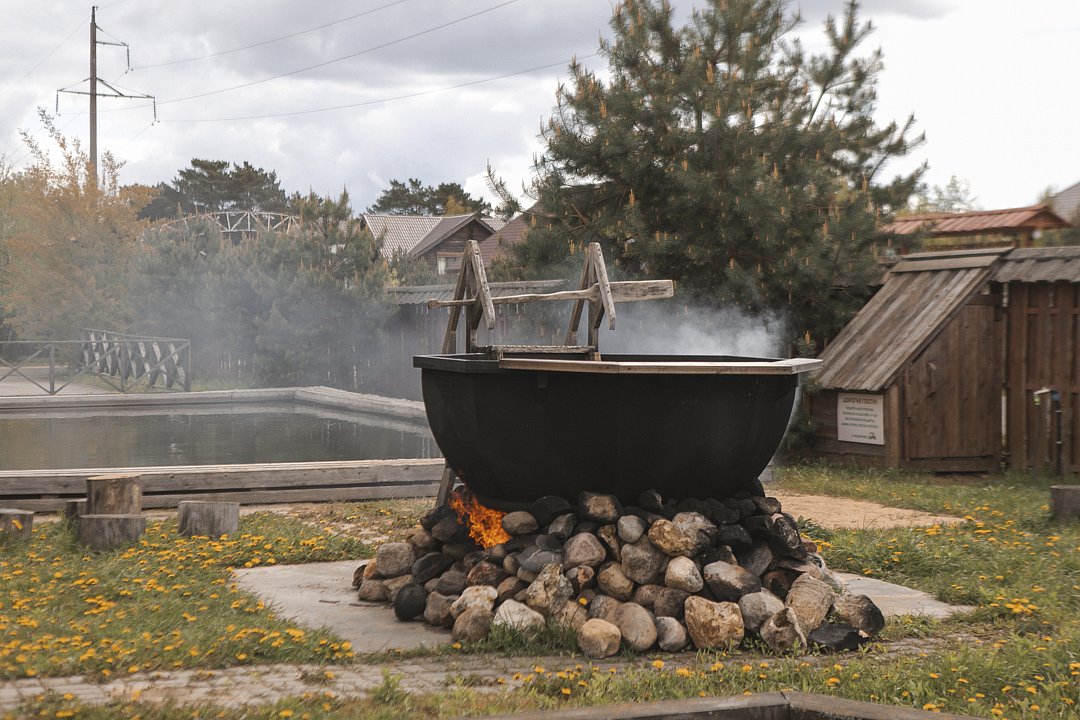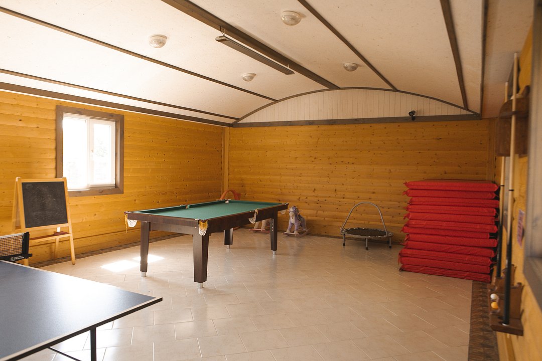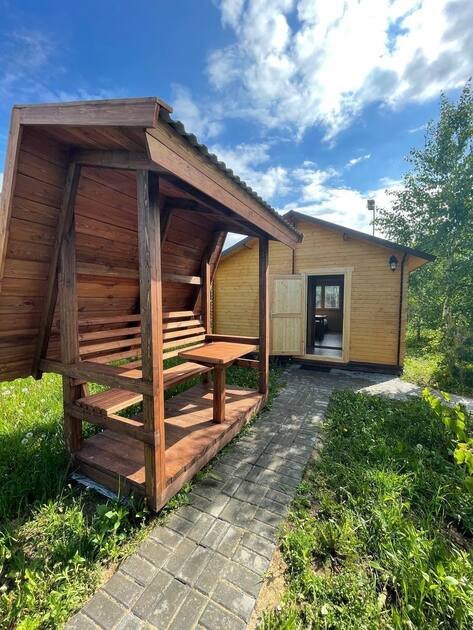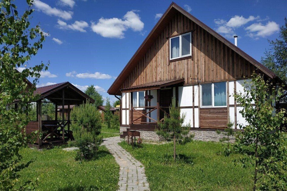 На огороженной территории в 2 гектара размещены 12 уютных домиков на выбор с собственной беседкой и зоной барбекю. Есть бани, банный чан, зал для проведения мероприятий, игровая комната, детская площадка, ферма с животными, огород, бассейн и пруд. Имеется парковка и хороший асфальтированный подъезд.