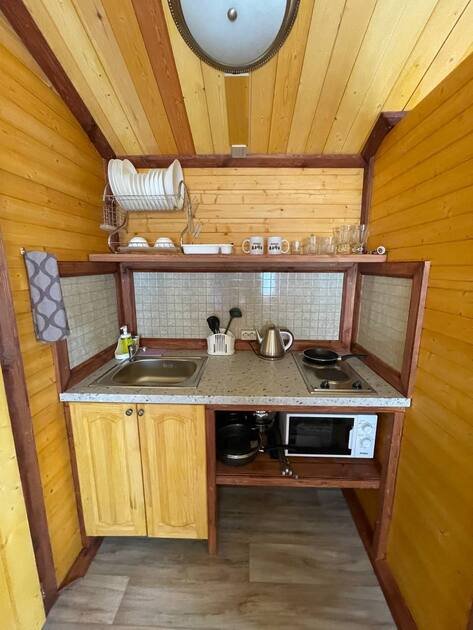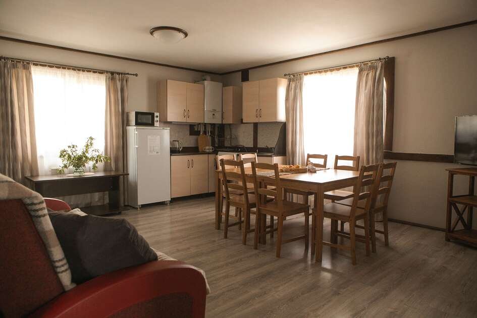 Все дома имеют свою территорию без заборов, зонированную деревьями, рядом беседка и мангал. В каждом доме есть всё для комфортного проживания: оборудованная кухня, посуда, постельное белье, полотенца