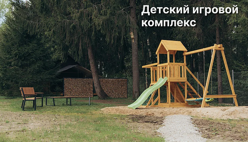 На территории организована русская баня, также отдыхающие могут отправиться на рыбалку, зимой здесь заливаются горки, и доступен прокат тюбингов. Среди услуг — парковка и беспроводной интернет.