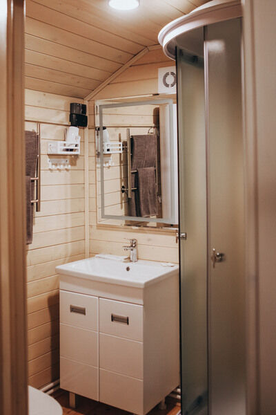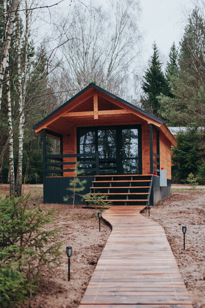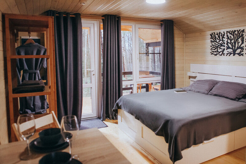 Комплекс, расположенный в живописном сосновом бору, включает в себя современные одноэтажные домики, в их числе есть дом-сфера с панорамным видом и дом Ярус, расположенный в глубине леса и отлично подходящий для любителей уединенного отдыха. Во всех домиках организована кухня, есть ванная комната с душем и вся необходимая техника — электрочайник, микроволновка, кондиционер, фен, плазменный телевизор. Возле каждого дома организована меблированная терраса.