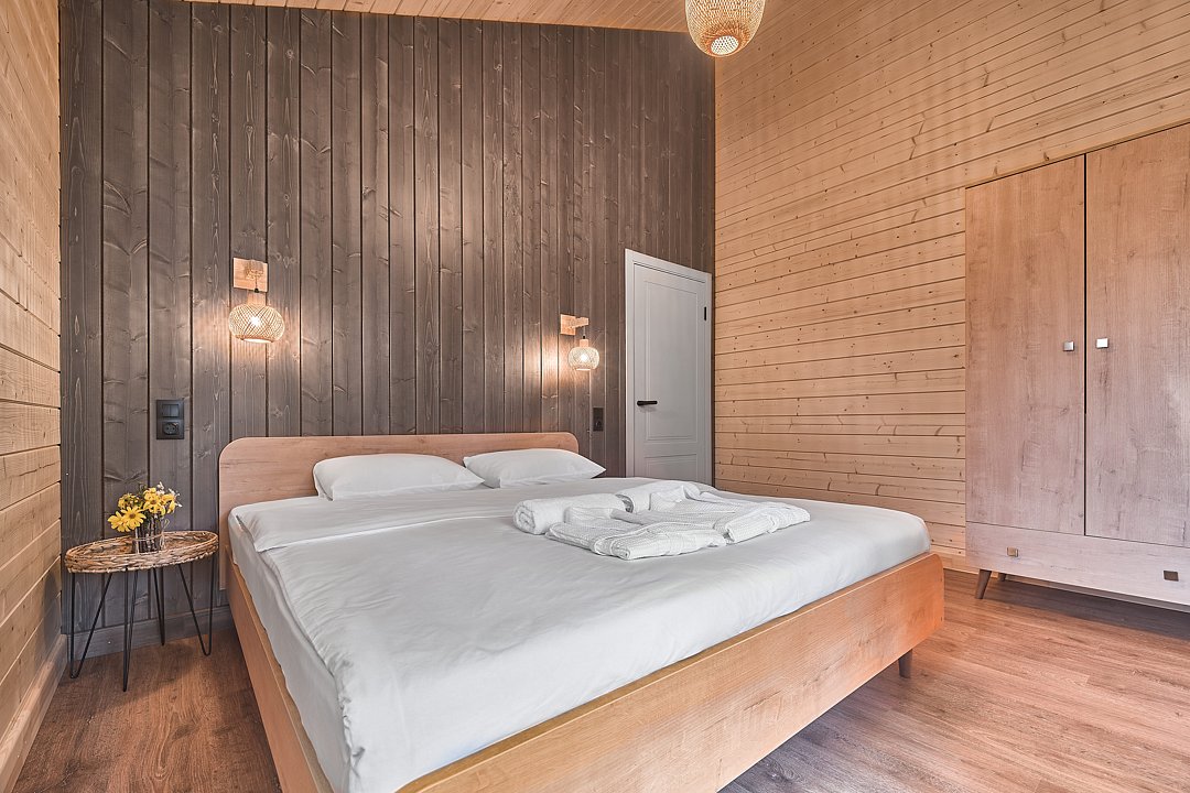 В доме три уютные спальни, просторная кухня-гостиная и собственная сауна. Дом полностью оборудован всей необходимой бытовой техникой, есть халаты, зубные наборы и другие одноразовые принадлежности. Качественная мебель, мягкий текстиль, стильный декор — всё здесь подобрано с заботой о вашем комфорте.