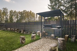 На участке оборудована большая зона барбекю со всем необходимым: мангалом, решетками, шампурами и удобной зоной отдыха. Отдыхающие могут пользоваться бесплатной автопарковкой. Всем гостям предоставляется бесплатный вход в парк «Этномир».