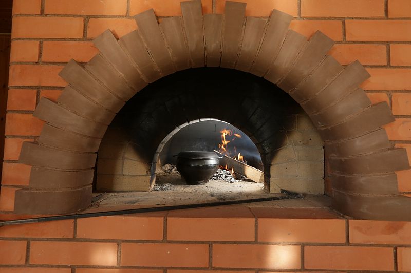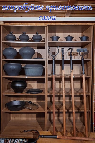 К услугам классическая шестигранная форма чана, подвешенная к цепям уходящей в небо сосновой треноги. В чан интегрирована печь с «РУБАШКОЙ» и с дверцей из жаростойкого стекла.