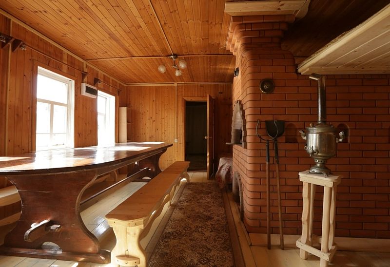 Бронировать заранее: растопка занимает 6 часов. В цену входит: растопленный банный дом, чайный стол из пяти сортов травяного чая, банный набор для каждого гостя: простынь, коврик для полка, шапка, тапки