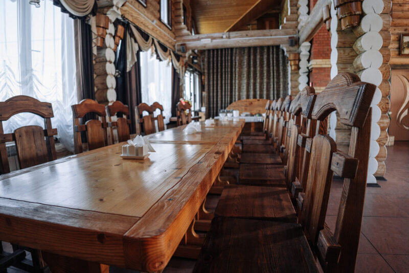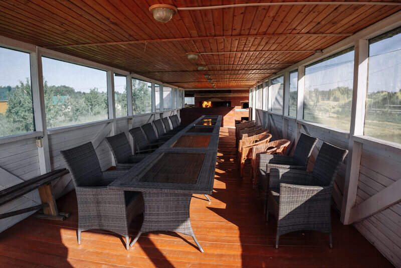 Ресторан предлагает завтраки для наших дорогих гостей. Для ваших мероприятий предлагаем закрытый ресторан в русском стиле до 70 персон и комфортабельная крытая беседка с мангальной зоной на 30 персон.
