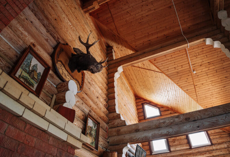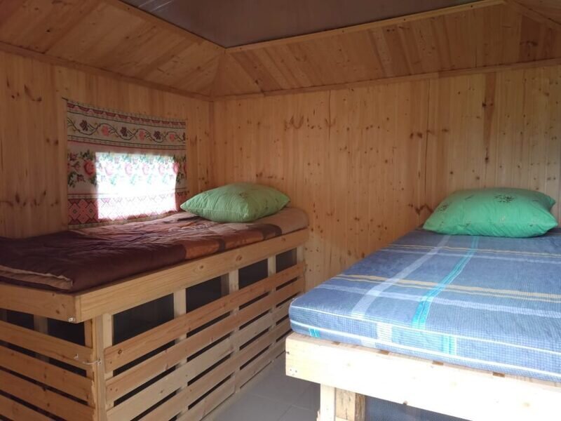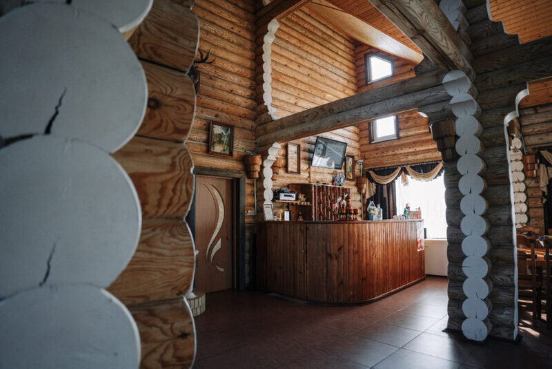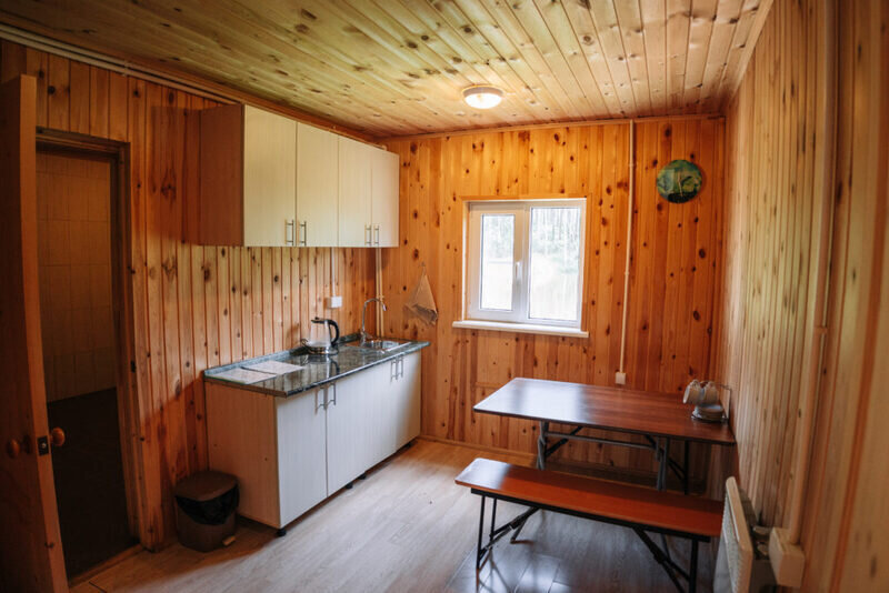 Предлагается проживание в деревянных домах с русской печкой. Комфортные, уютные двухэтажные срубы приютят до восьми человек. К тому же: «Натуральное дерево насыщает воздух особым ароматом и микроклиматом, который благотворно влияет на здоровье и восстанавливает силы организма».