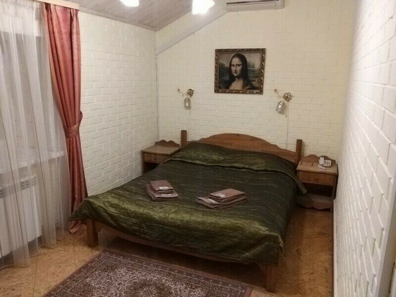 - Одна комната с одной двуспальной кроватью, прикроватными тумбочками
