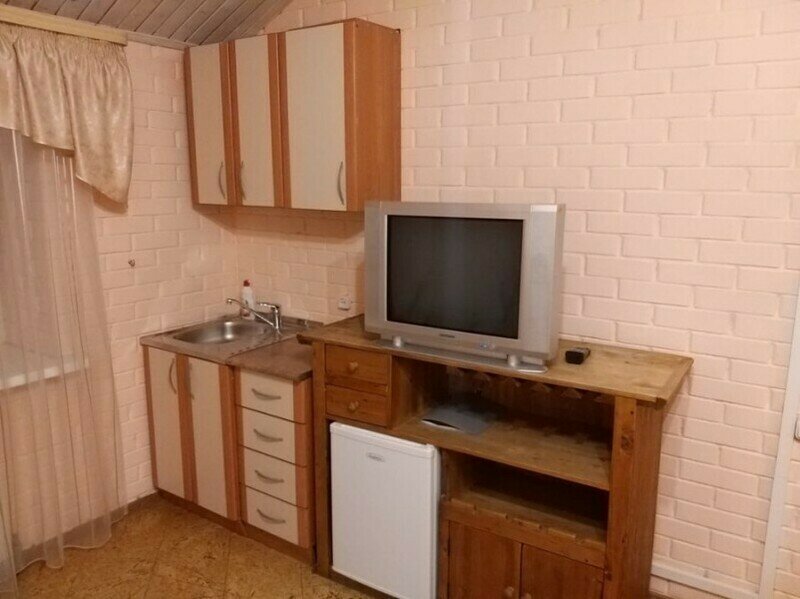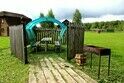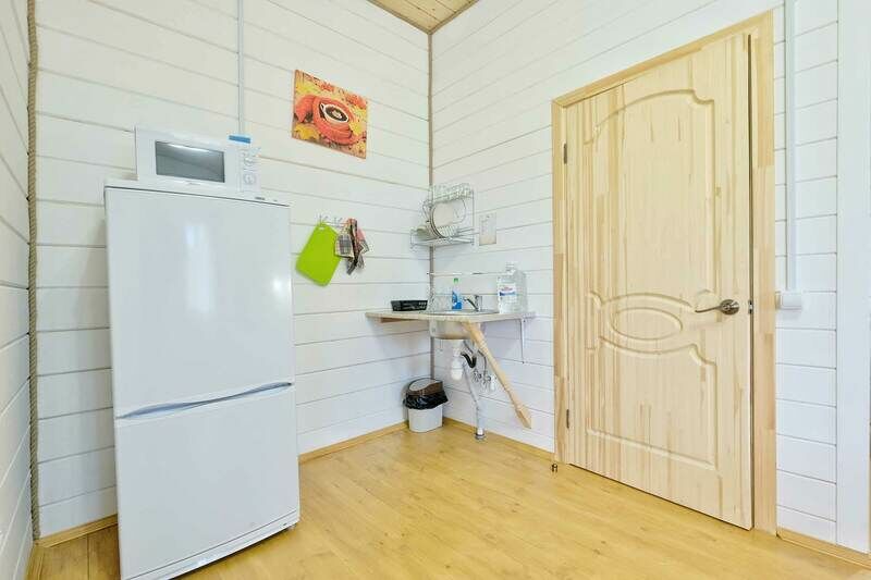 Нам все понравилось! Это прям настоящая эко-деревня без особого гламура, зато с огромной территорией, с водоемами, зверюшками, красивейшей природой и кучкой избушек, у каждой избушки мангальная зона. Жуков разных очень много, таких размеров слепней мы никогда видели, полчаса не решались выйти из машины, девчонки нашей семьи страшно их боятся. Мы жили в домике Теремок. Это довольно скромные апартаменты, но мы были на две ночи, поэтому в целом довольны: одна комната, ванная-туалет, холодильник, телек, вентилятор. В ванной на раковине лежали одноразовые косметические средства. С горячей водой проблем не было. Белье в постели чистое и стопка чистых полотенец, все как положено. Кухонная зона номинальная: на одном пяточке напихана раковина, микроволновка, чайник. Посуды мало: несколько тарелок, чашки, приборы, нож, но не было емкости под салат или шашлык. Нас четверо, а чашек оказалось три, вилки две. Разделочной доски не было. Зато было средство от комаров и лента от мух. Кровати средней комфортности, а вот дополнительное место ужасное- засаленный диван. Раскладная часть вся в жестких перепадах, спать очень некомфортно, а за это просят 1500 руб за ночь дополнительно.