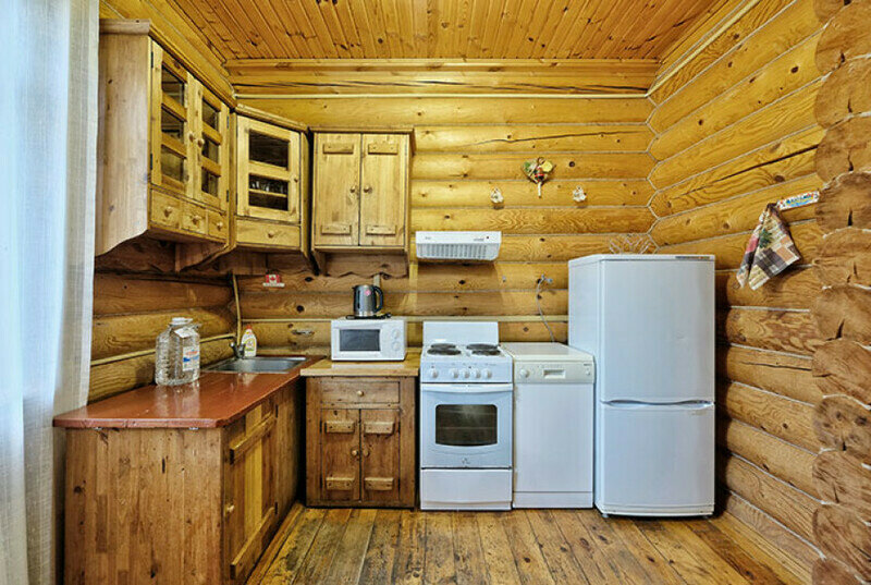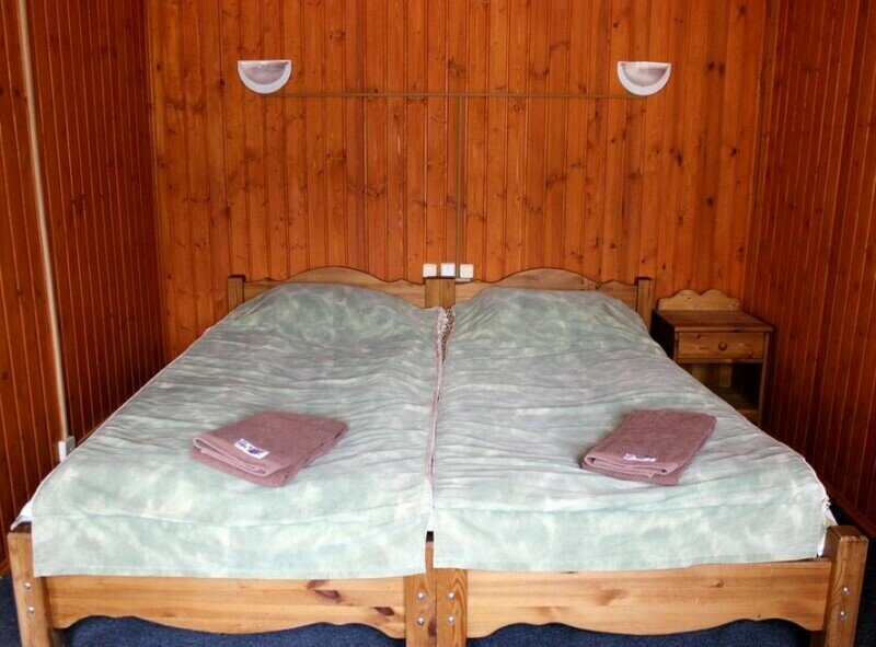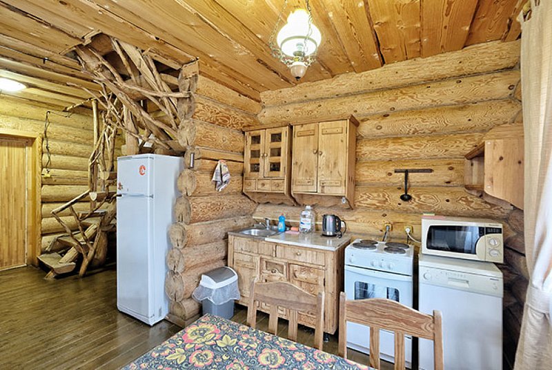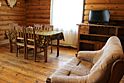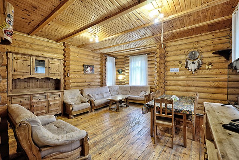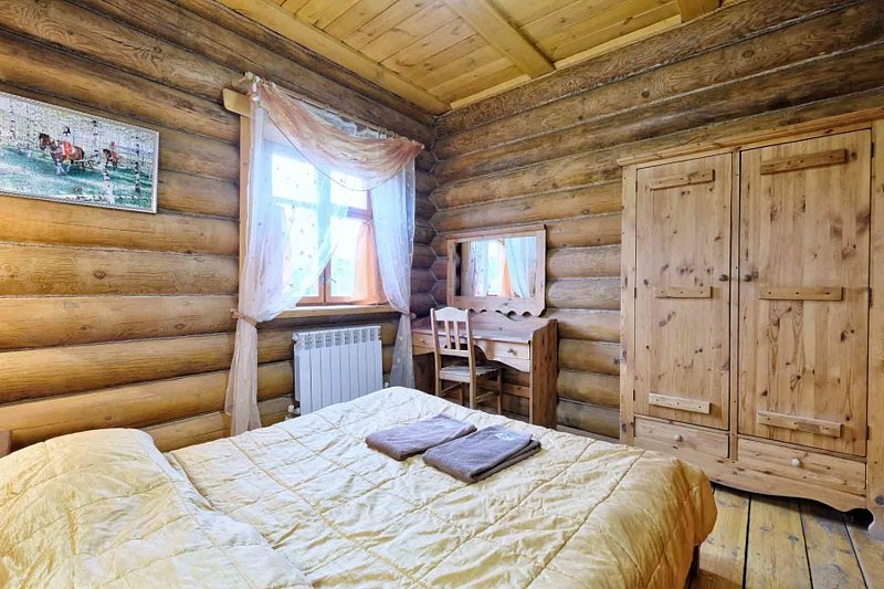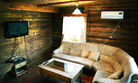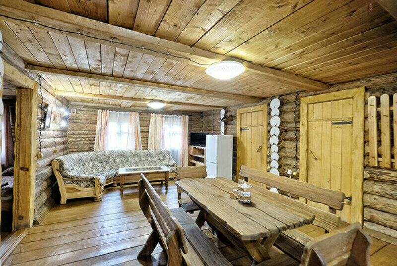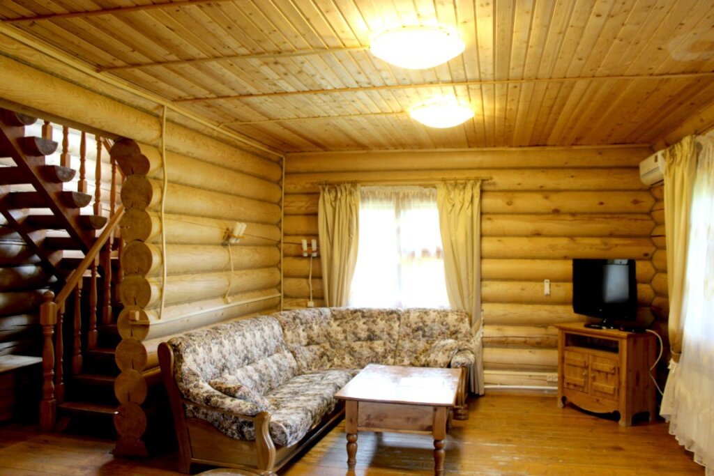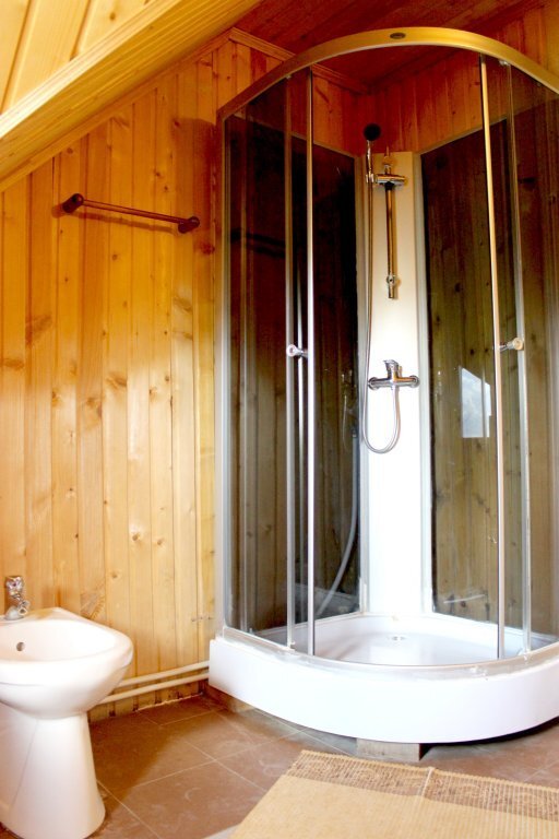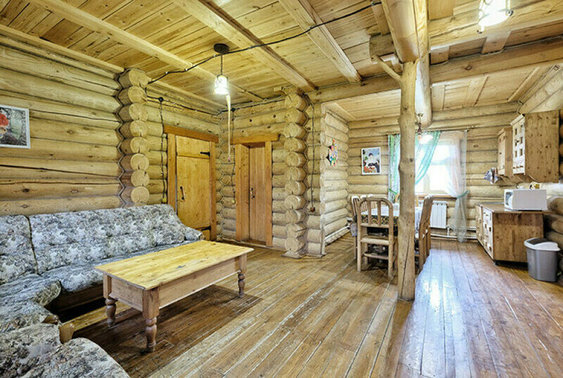 Для проживания предлагаются комфортабельные деревянные постройки с удобными спальными местами, телевизором и ванной комнатой.
