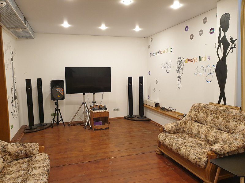 - Раскладной диван, журнальный столик, шкаф, туалетный столик, спутниковое ТВ, DVD