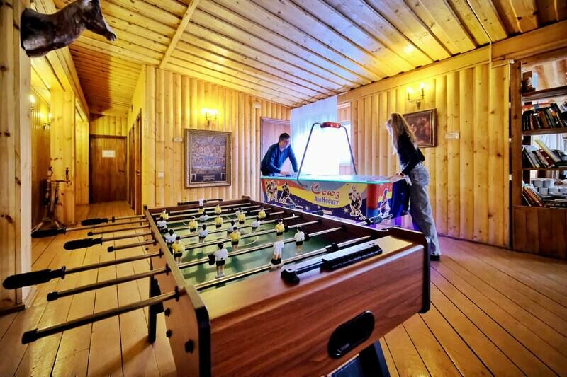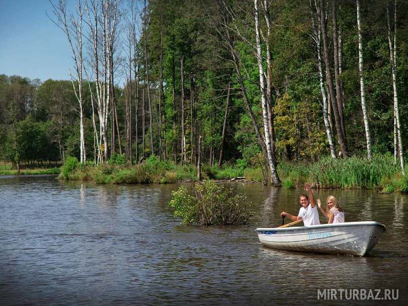 На территории парка есть бассейн на воздухе, рыбалка, охота, мини зоопарк. Можно поплавать на лодках.