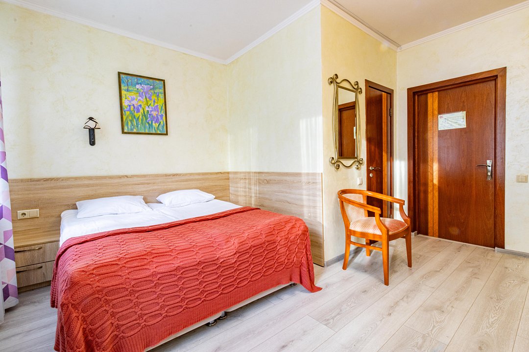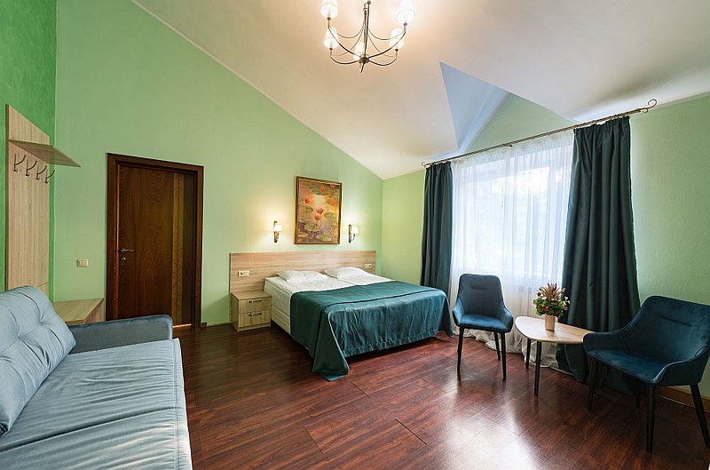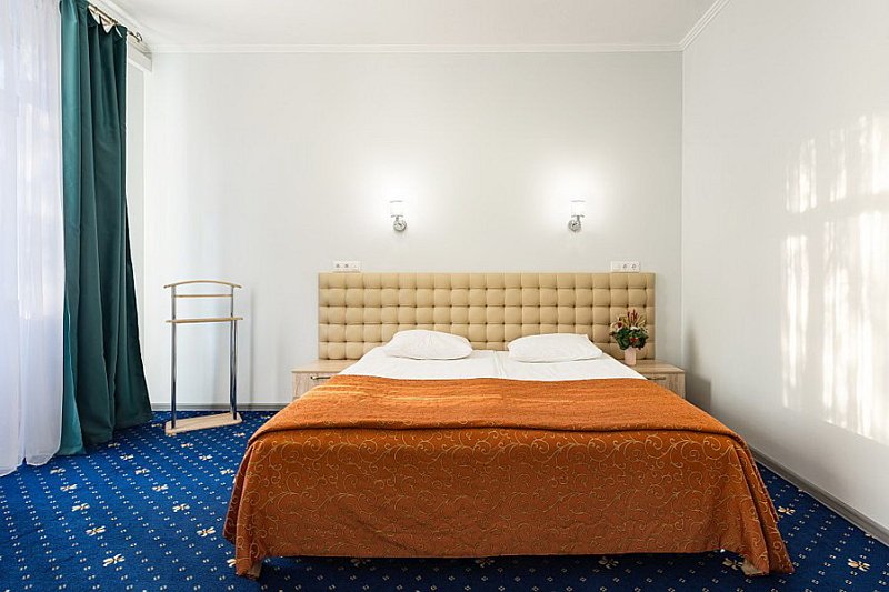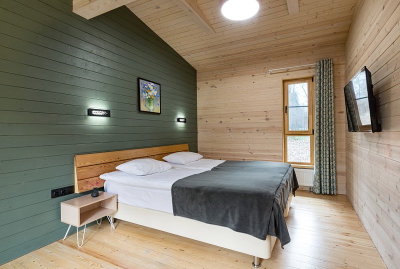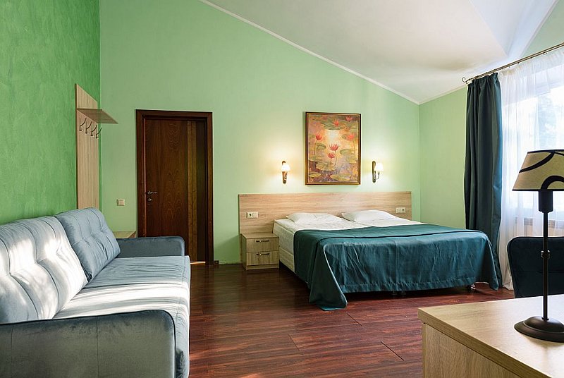 Двухместный номер с большой кроватью, со всеми удобствами и видом на лес и парк.