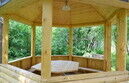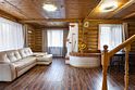 Коттедж с сауной расположен на высоком берегу с видом на реку Ока и примыкает к лесной зоне. Огорожен плетеным забором, имеет собственное патио со столом на 8 человек, и мангалом.