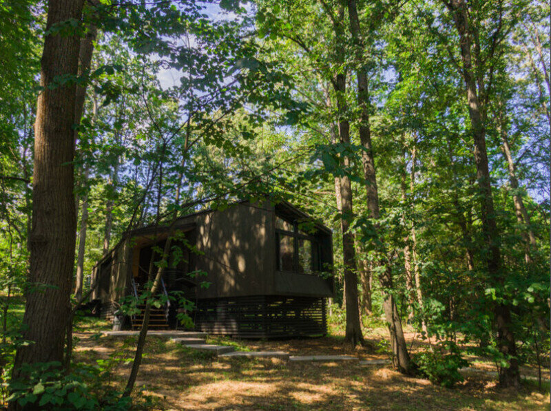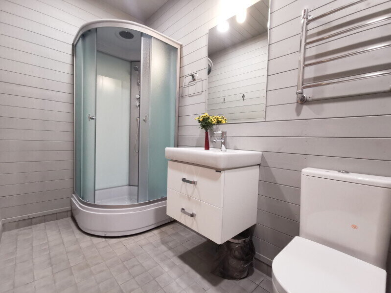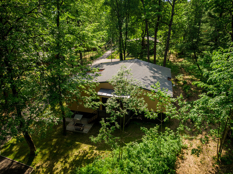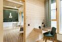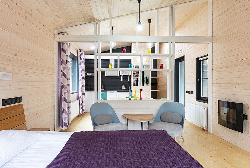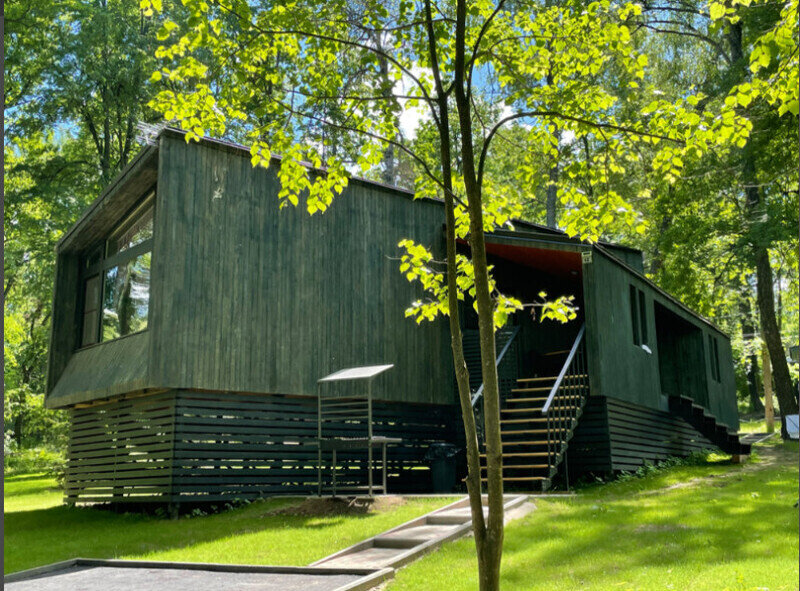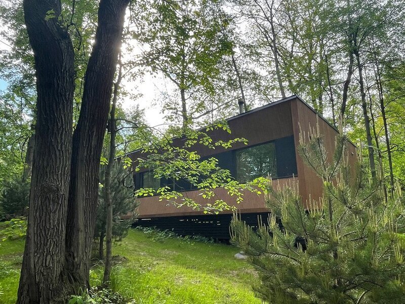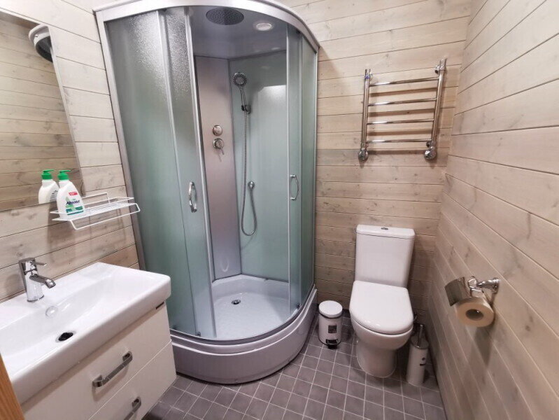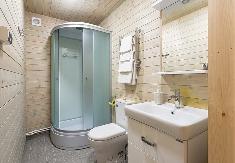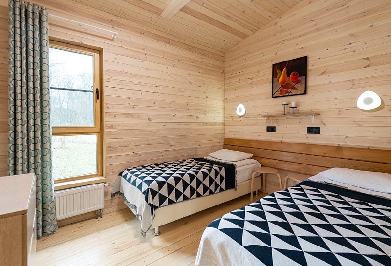 Коттедж в скандинавском стиле, имеет одну спальню и гостиную, кухню и террасу, рядом на открытой площадке мангал. Коттедж сдвоенный и состоит из двух половинок, разделенных между собой техническим помещением. Доступна услуга хранения багажа.