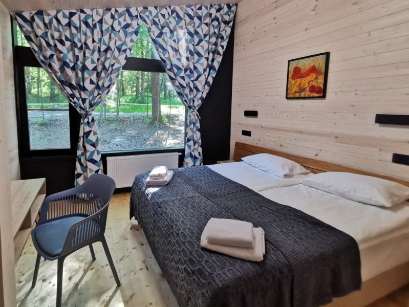 Двухместный номер со всеми удобствами и видом на лес и парк.