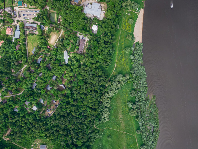 Далее двигаемся по главной дороге через реку Протва, проезжаем деревни: Гурьево, Волковское, Кузьмищево, затем поворачиваем налево в город Таруса. Проехав через город по главной дороге, после второго светофора на расстоянии 1,5 км, поворачиваем налево по указателю Д.О. «Серебряный Век».