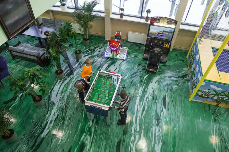 На территории дома отдыха есть множество активностей для любителей спорта и приключений. Здесь можно насладиться пляжем, организовать экскурсии, покататься на велосипеде или поиграть в футбол. Зимой доступны лыжная трасса, каток и тюбинг. В отеле также есть тренажерный зал, стол для пинг-понга, бильярд и аэрохоккей для развлечения гостей. А для полного расслабления можно посетить баню на дровах или сауну в коттедже. Маленькие гости могут наслаждаться игровой площадкой, разнообразными развлечениями в центре отдыха, посетить мини-зоопарк и участвовать в специальных программных мероприятиях.