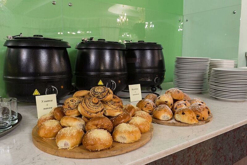 В ресторане действует доставка в номер или коттедж. Стоимость доставки 150 ₽ при сумме заказа до 1500 ₽ и 10% от суммы чека при заказе от 1500 ₽.