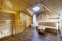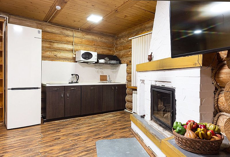 Коттедж имеет большой гостиный зал с камином, кухню, два санузла. На втором этаже расположена просторная спальня. Около коттеджа освещаемая беседка со столом и лавочками, а также мангал.
