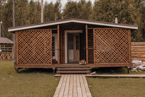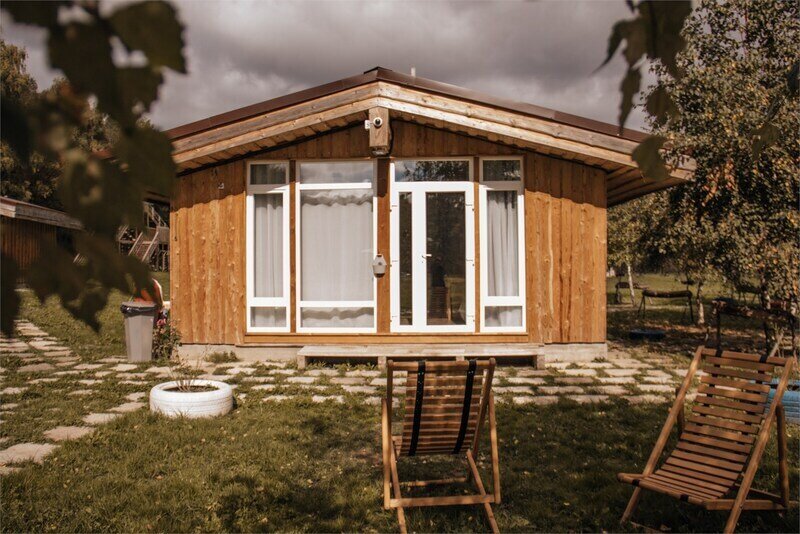 Уютный дом, состоящий из двух комнат, ванной, душевой и просторной кухни-гостиной.