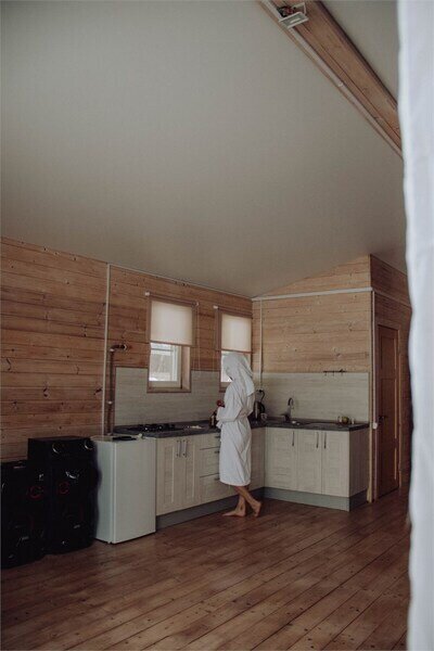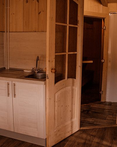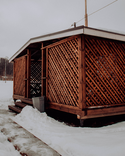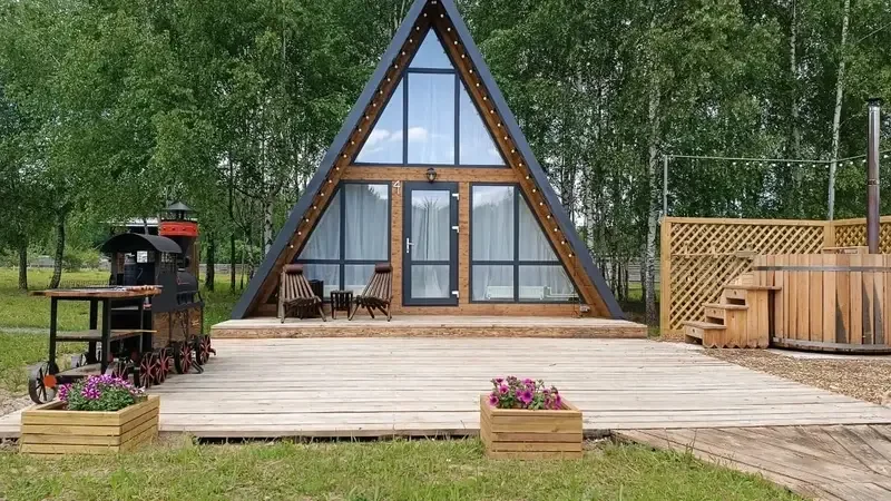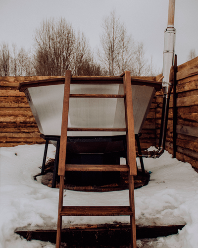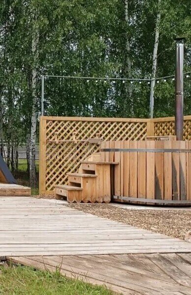 При заказе домика типа А-фрейм вы получите возможность насладиться водными процедурами в горячей купели Фурако. В остальных случаях аренда купели оплачивается отдельно — 2500 ₽/2 часа.