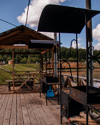 Для вашего удобства рядом с маленькими беседками оборудована мангальная зона.