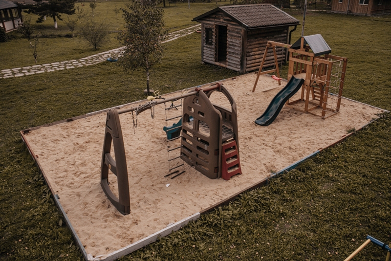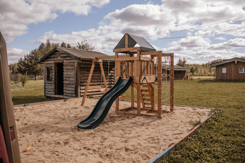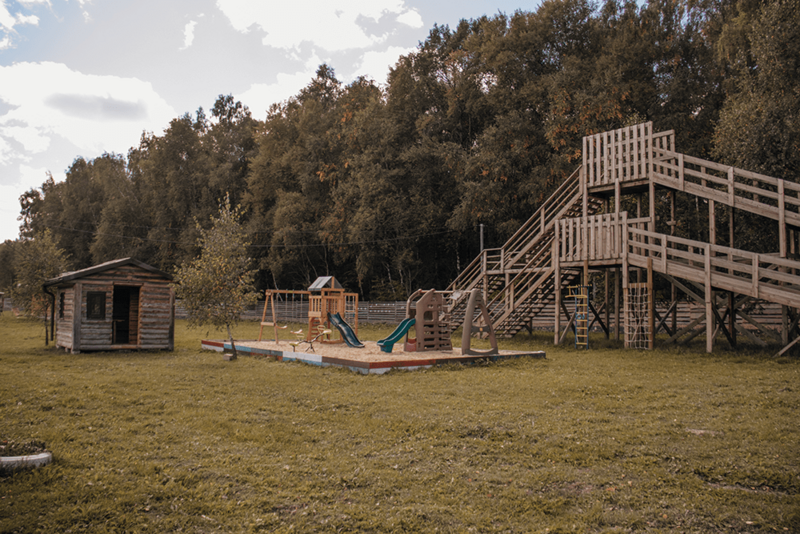 Для детей на базе отдыха предусмотрены развлечения: большая горка и детская площадка с разнообразными игровыми элементами.