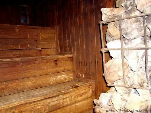 - 1 этаж: русская баня (топится дровами), купель (4х3 метра), столовая с русской печкой (холодильник, газовая плита, СВЧ-печь), душевая, туалет, П-образный холл, бильярд.
