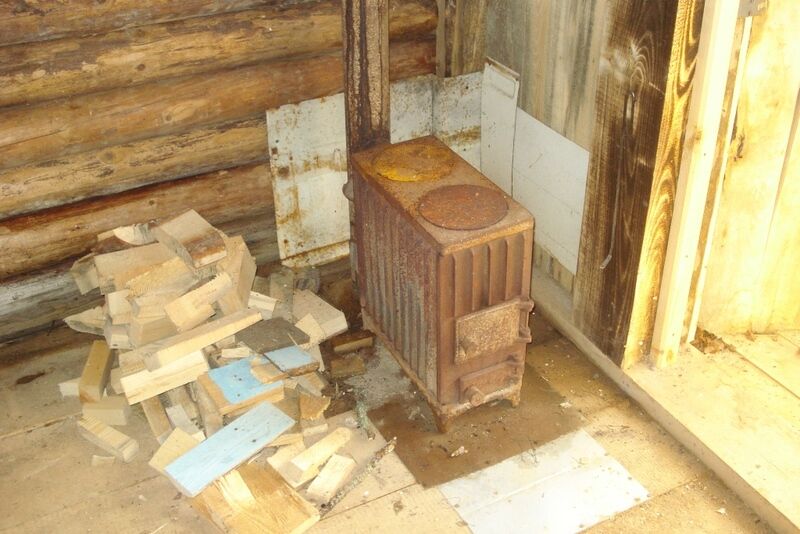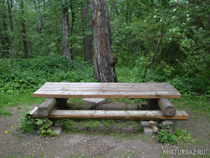 Стол, скамьи, печка, дрова, вешалки, беседка.