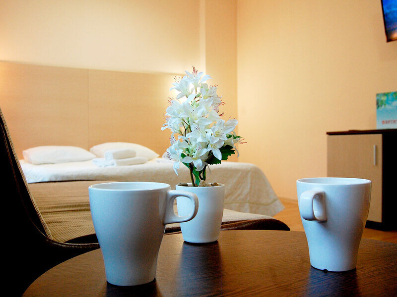 Отдыхали в феврале) очень понравилось в избе, уютно, есть чайник, микроволновка, столовые приборы. Телевизор принимает много каналов, спутниковое, некоторые рябят немного, но не напрягало) горячая вода была без перебоев, кровать удобная). Размещение на любом вкус, не нравится в избе, выбор огромный! Wi-fi работал хорошо, из мобильной связи только Теле два работал интернет на уровне. Территория большая, ухоженная. На выезде кулинария, если проголодался, можно до 20-00 поесть там или купить в номер) Все необходимое там есть, вода, прокладки, солёности, сладкое, хлеб и много всего первой необходимости) Кроме того, совсем рядом Пятёрочка! Магазины тоже в шаговой доступности, рынок, торговый центр) погулять есть где) Питание в санатории нам понравилось, вкусно, приготовлено с душой по домашнему! Места в ресторане много, уютно) ходили на процедуры для носа и солевую камеру. А так, процедур очень много, чистота везде! На рецепшине девушки очень доброжелательные, все объяснят, расскажут подробно! Хотели погулять на маслянице, но у мамы случился сердечный приступ, вынуждены были уехать быстро домой( девушки помогли вызвать такси и три дня оставили нам на депозите! Теперь едем летом и можем использовать эти денёчки! Спасибо Вам за это огромное! За понимание и душевный приём!!!