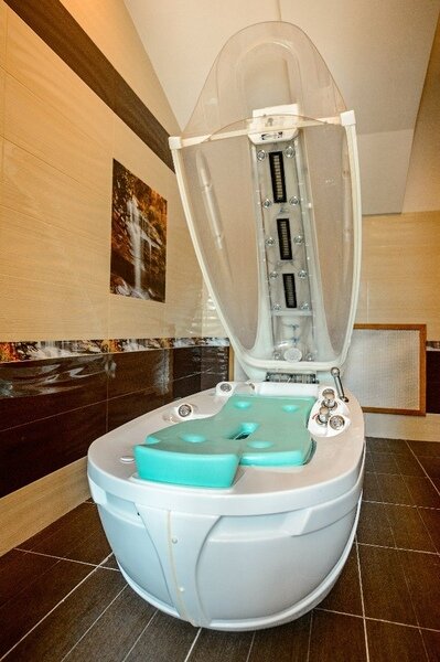 В комплексе также имеется хамам, финская сауна, соляная сауна, керамическая сауна, детская сауна, отдельно стоящая русская баня с индивидуальными программами парения и бассейны.