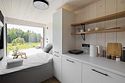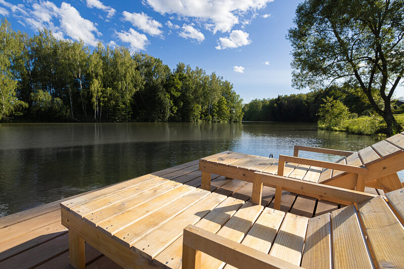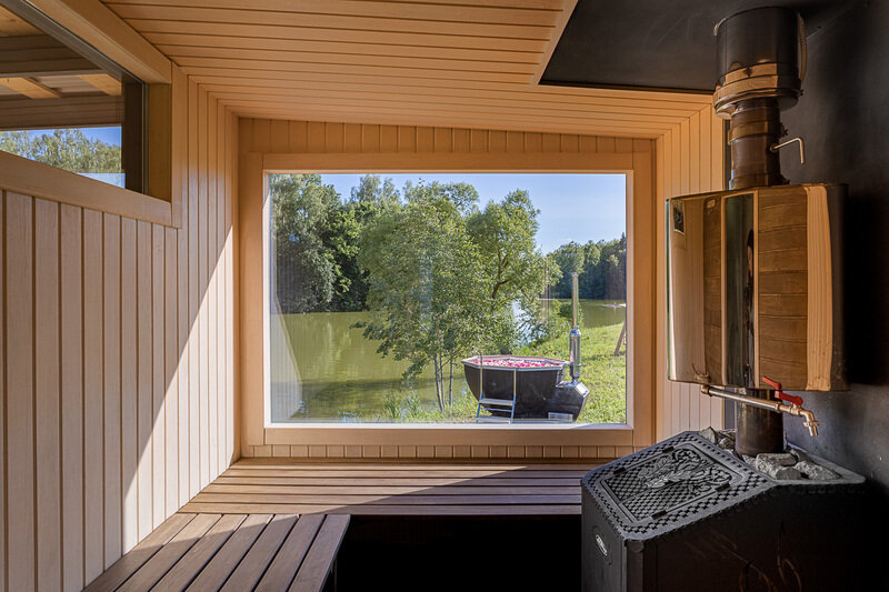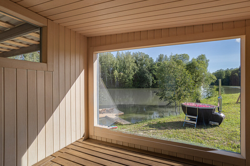 Семейный отдыхДостоинстваСоветую всем, кто мечтает отдохнуть от городской суеты. Пространство продумано до мелочей. Очень уютно. Панорамные окна открывают потрясающий вид на лес с прудом.